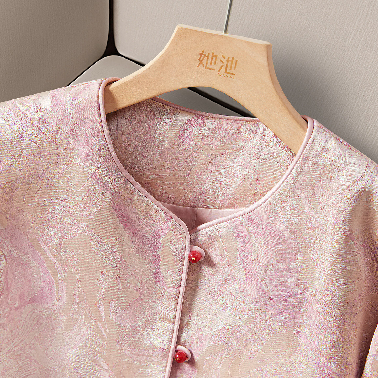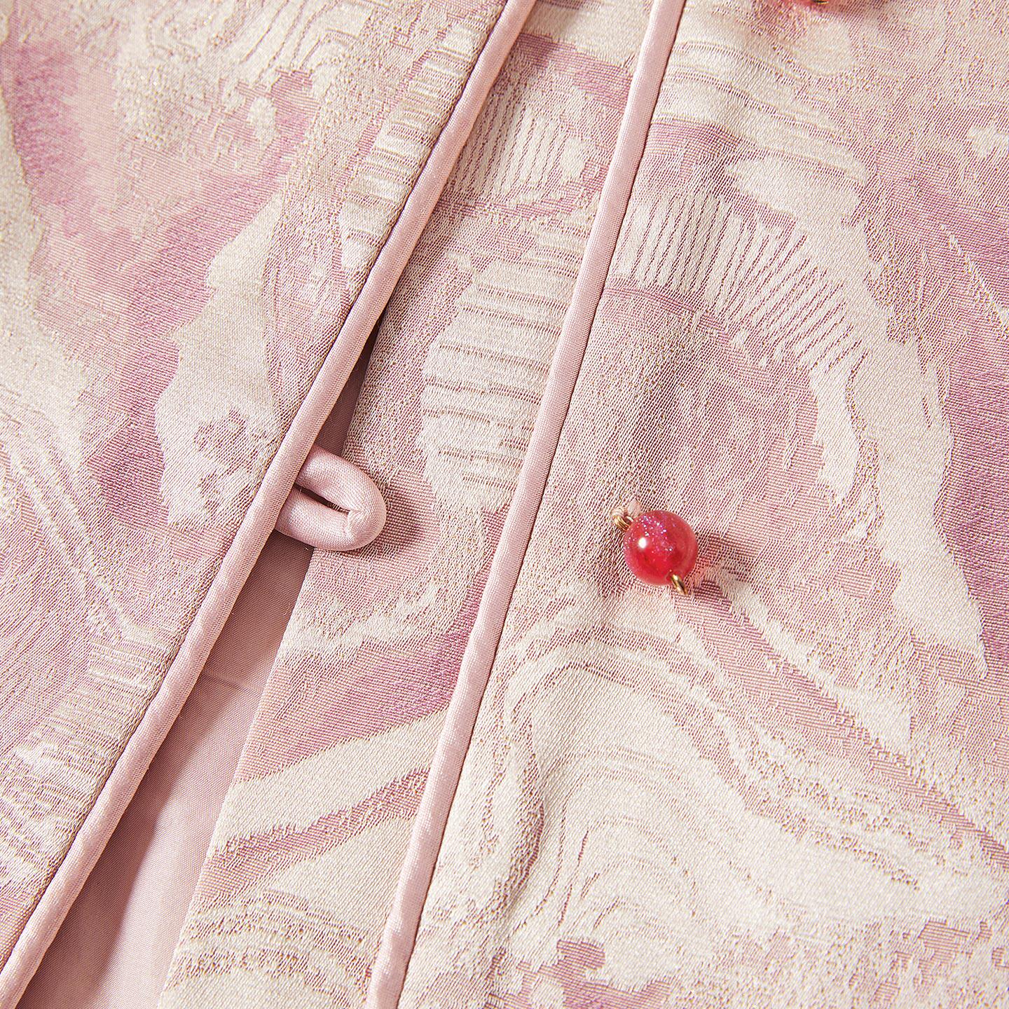 她池单排扣外套2026春装新款女装宽松款优雅气质国风圆领短款上衣