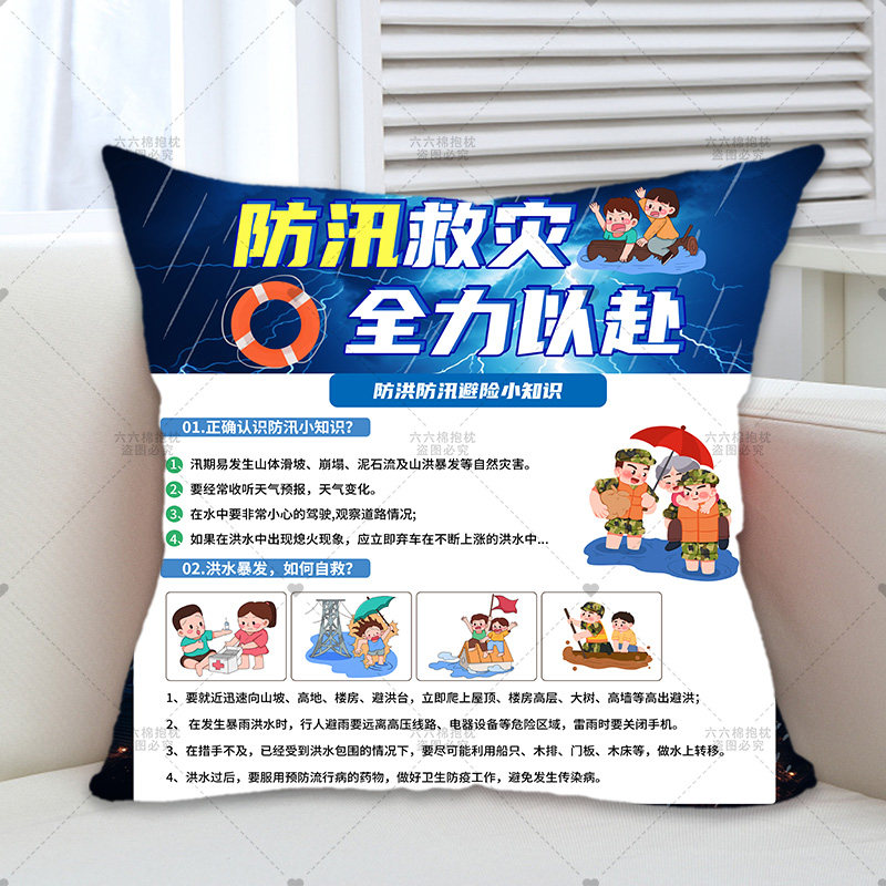 防洪防汛防灾减灾日社区企业安全知识宣传礼品定制抱枕被靠垫靠枕