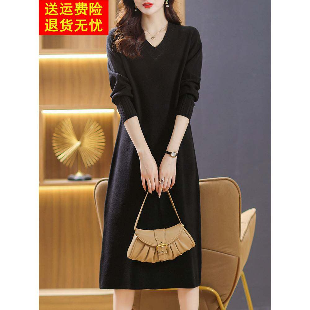 针织连衣裙秋冬装2025新款中年妈妈羊毛长裙气场强大女装打底裙子