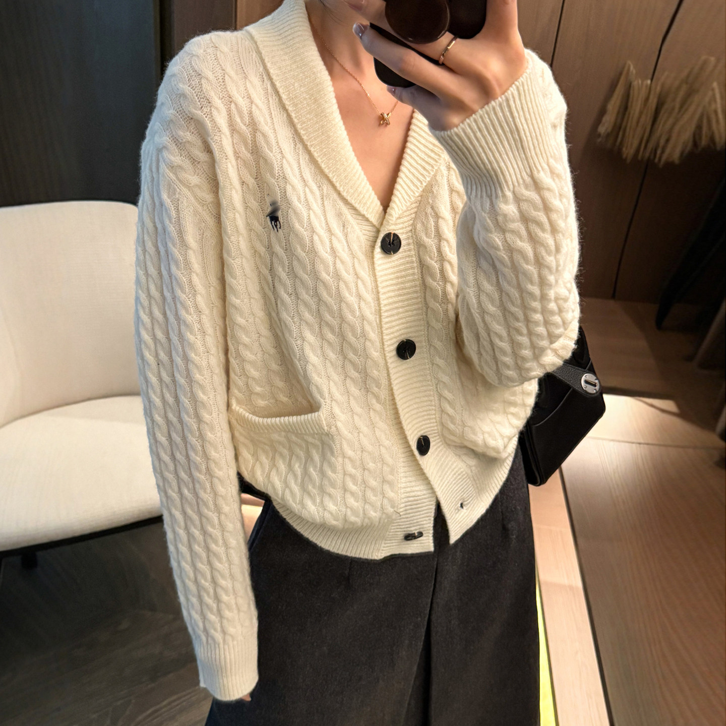 100%绵羊毛麻花针织开衫女欧洲站2025冬装新款欧货女装毛衣外套潮