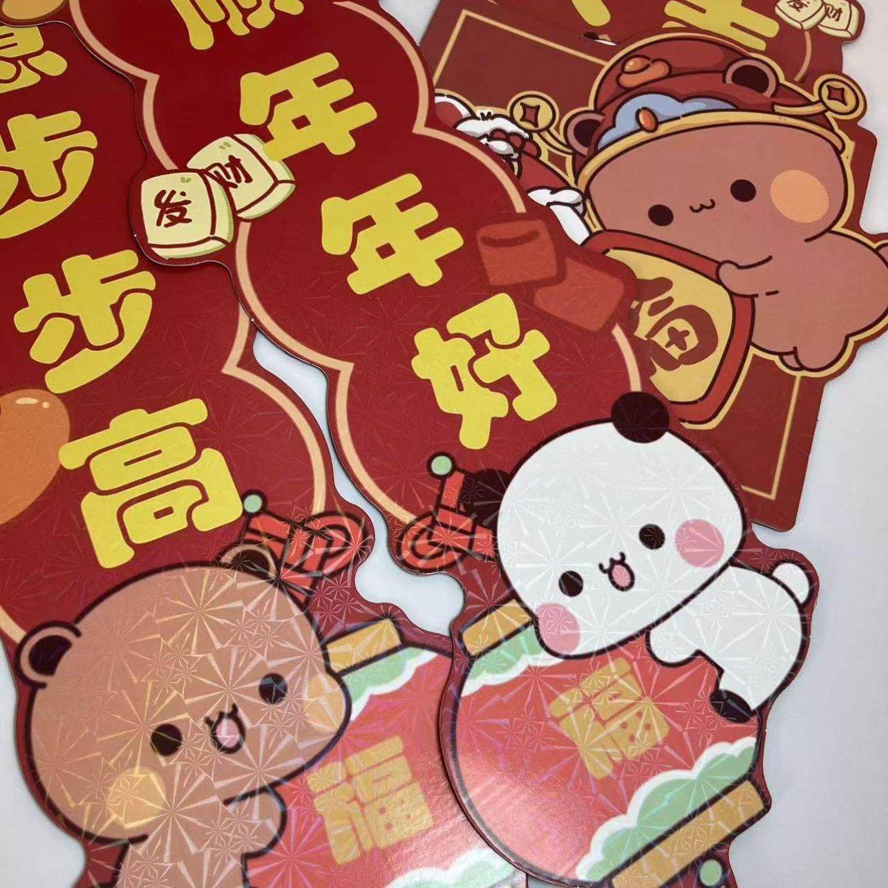 新年一二布布对联春节对联磁吸纸质过年入户门卡通创意软磁春联