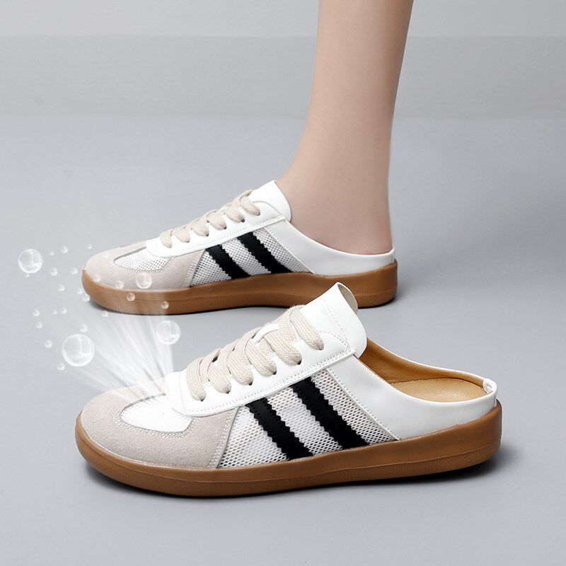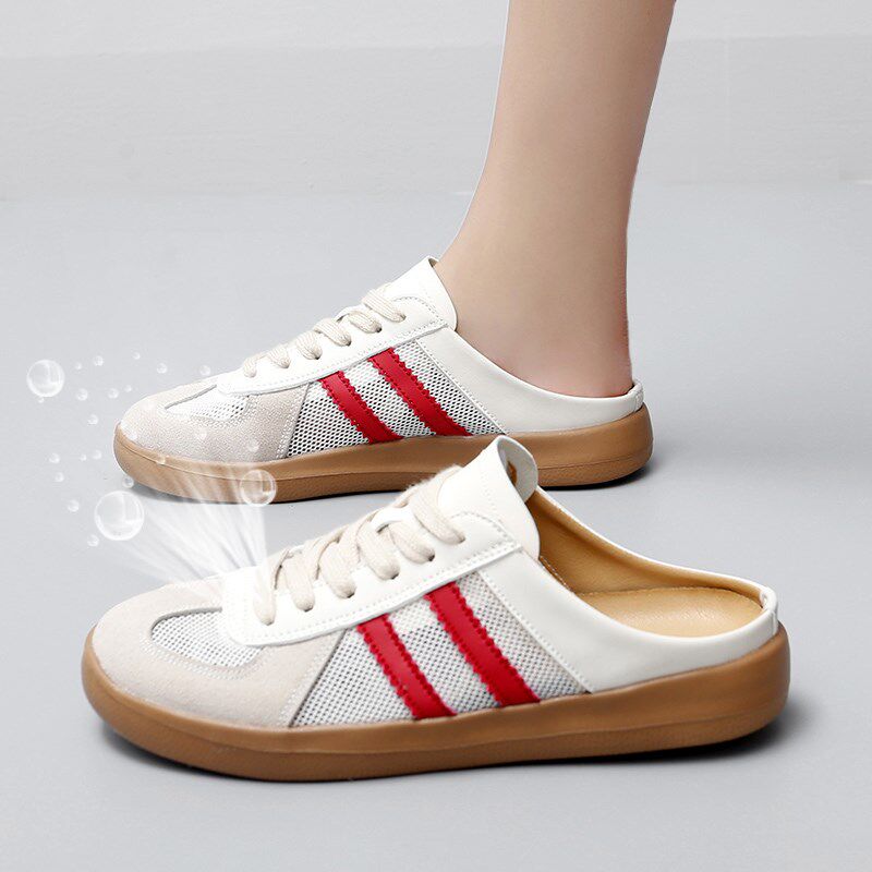大码女鞋41到43软底不累脚半拖板鞋夏季网面透气无后跟包头半拖鞋