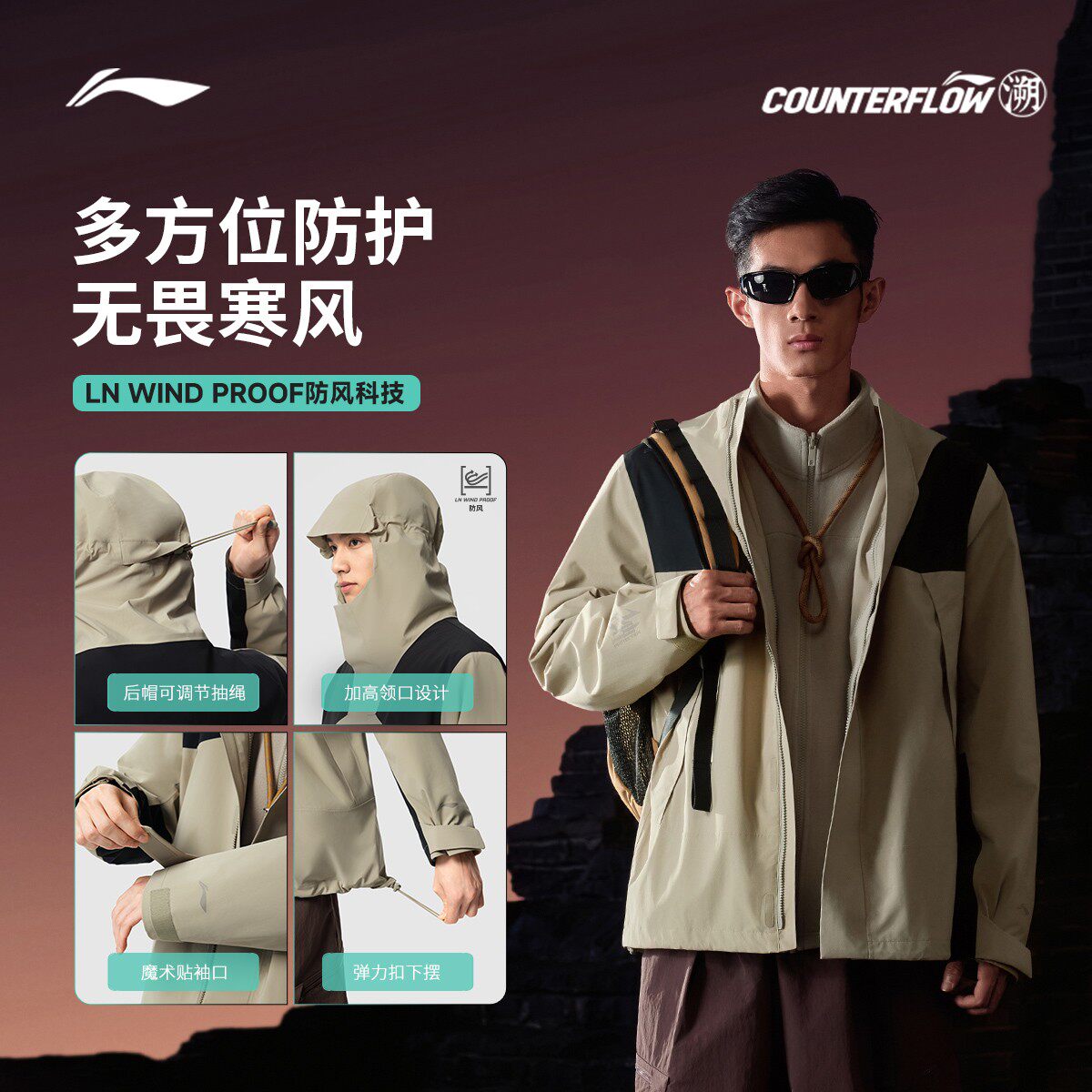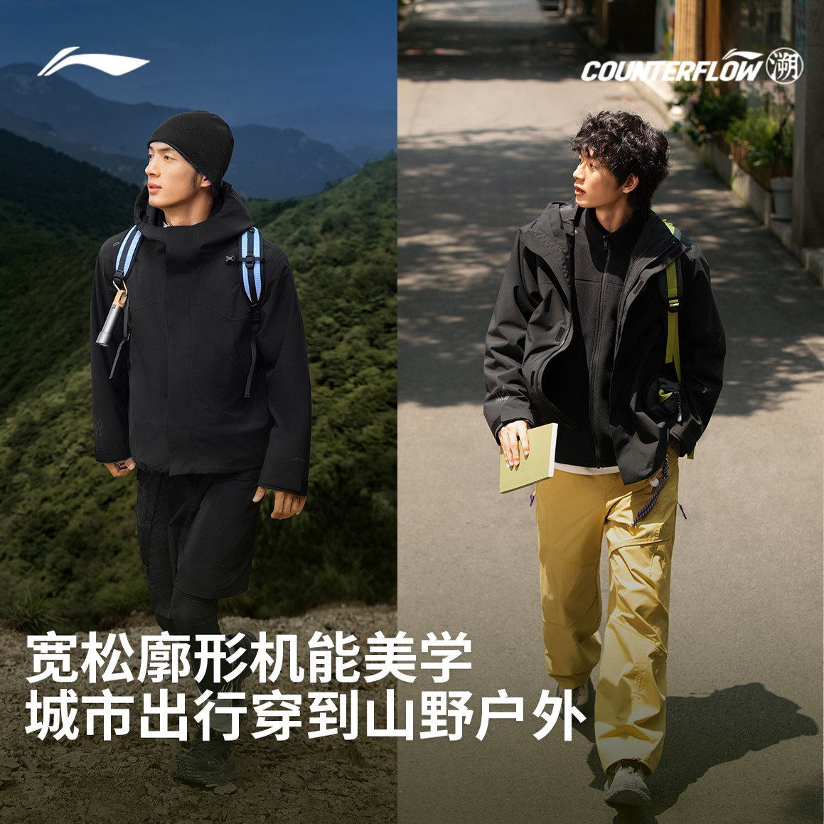 李宁户外CF溯|万龙甲三合一冲锋衣男女新品防风防雨硬壳登山外套