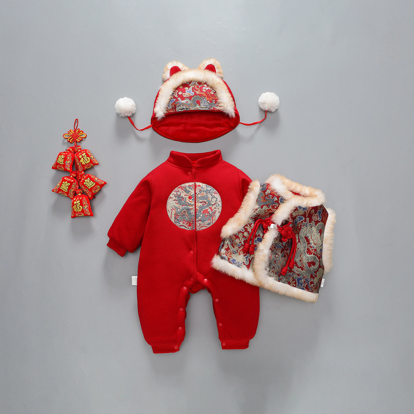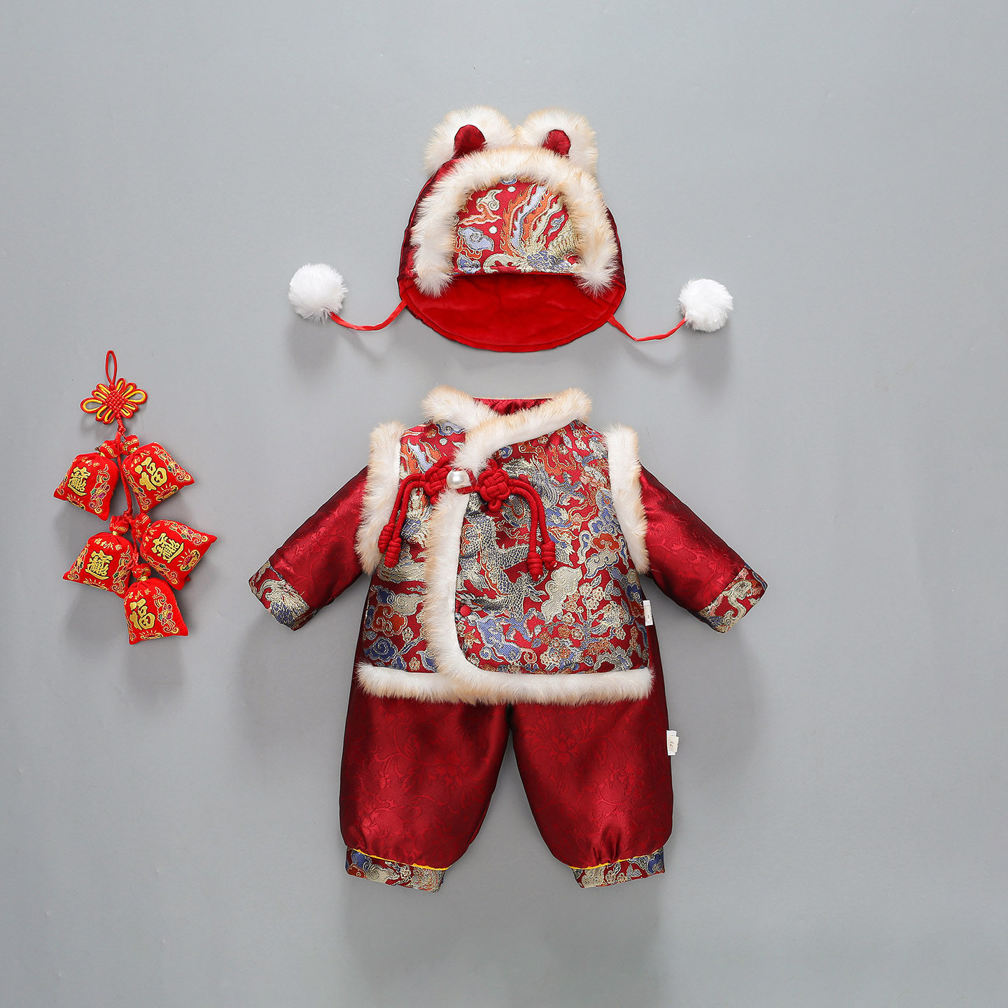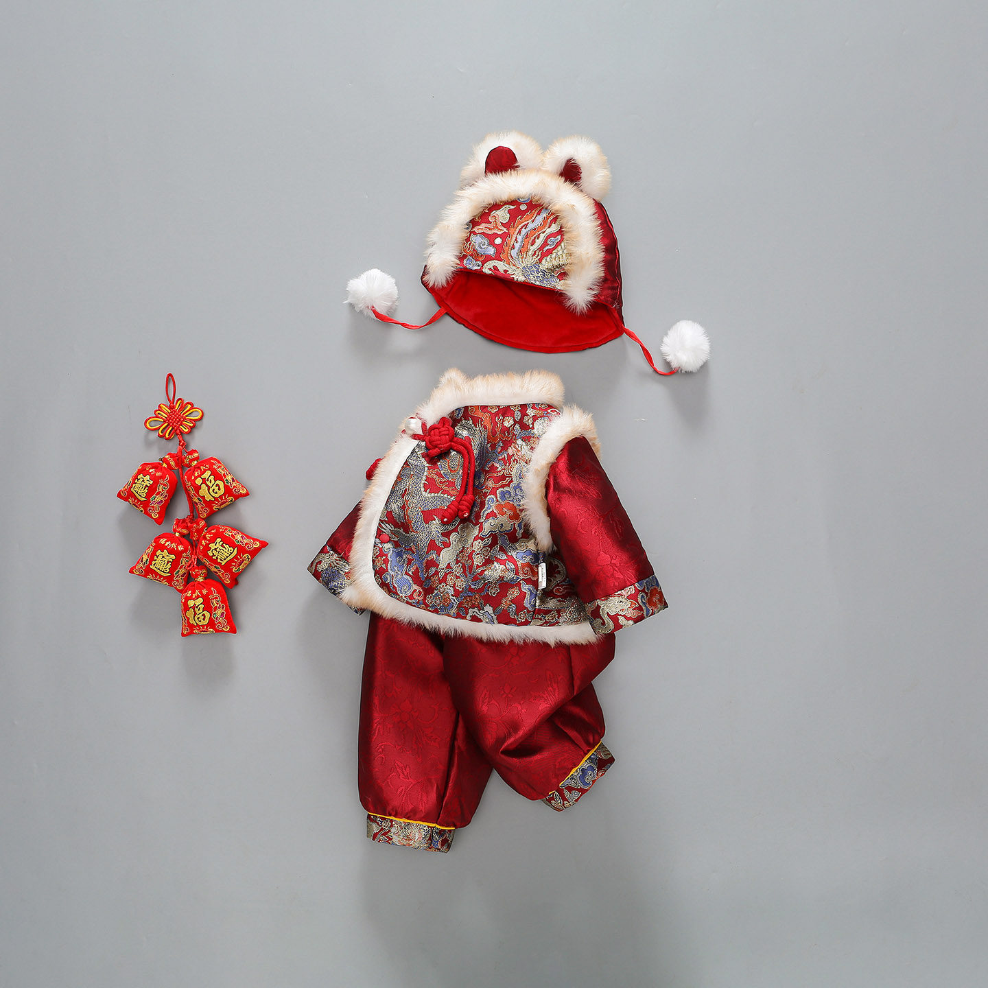 年服汉服男童新中式小少爷唐装冬装儿童红色喜庆风套装宝宝拜年服