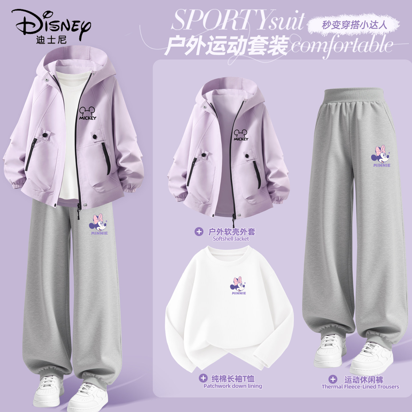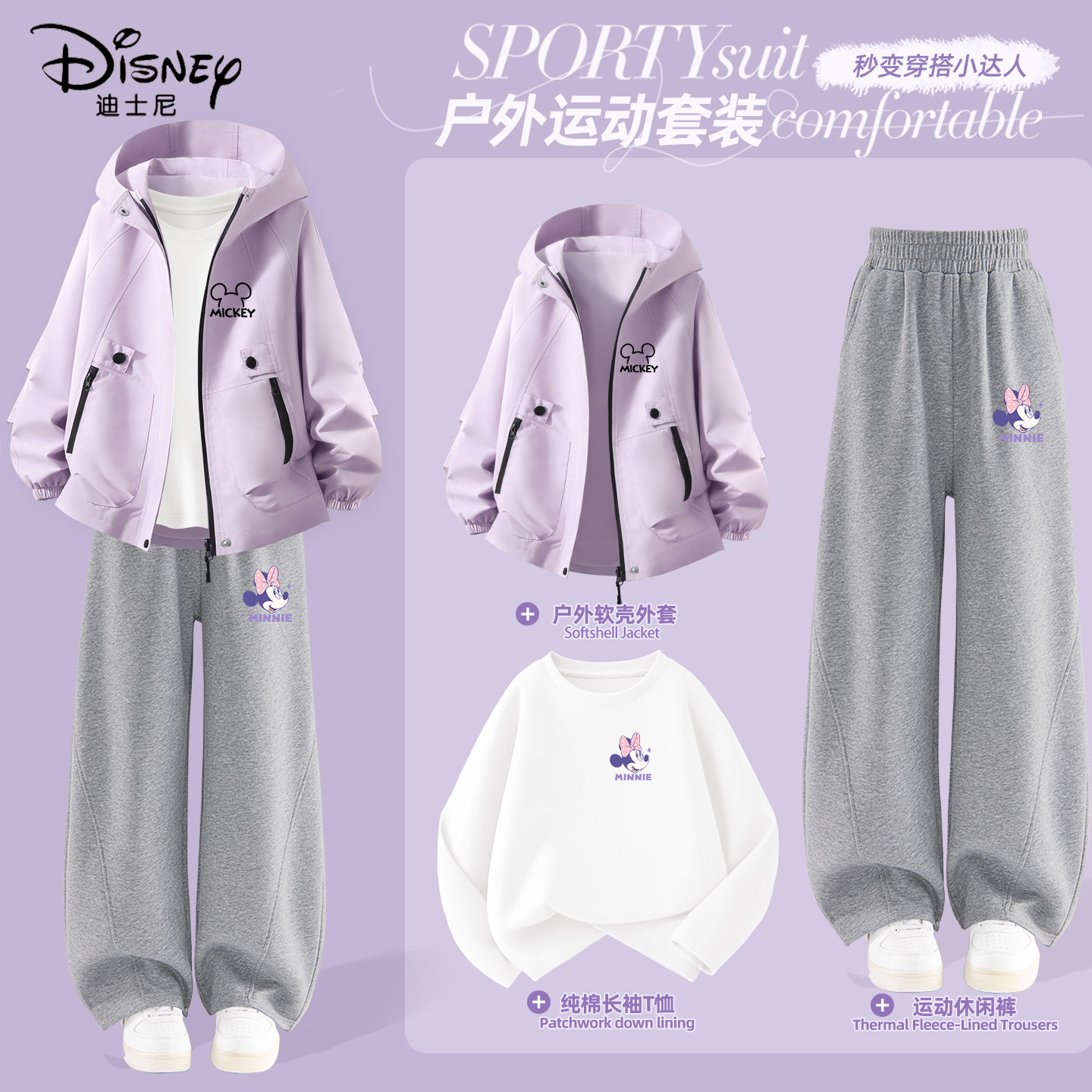 迪士尼女童套装春秋款2026新款时髦洋气三件套童装女装儿童春装女