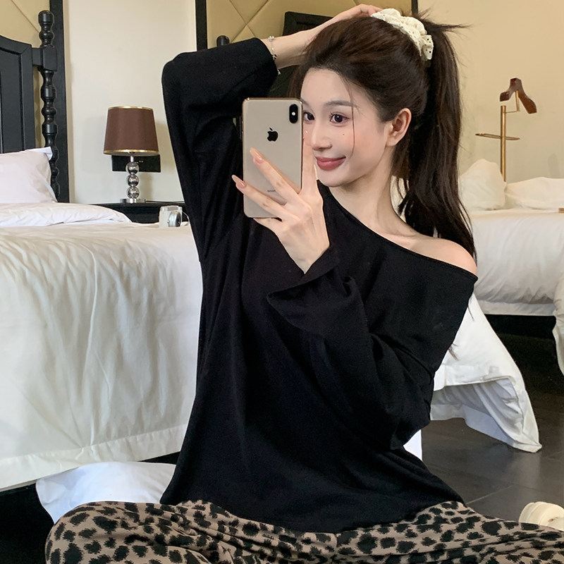 纯棉带胸垫睡衣女款春秋长袖长裤套头2025新款宽松大码家居服套装
