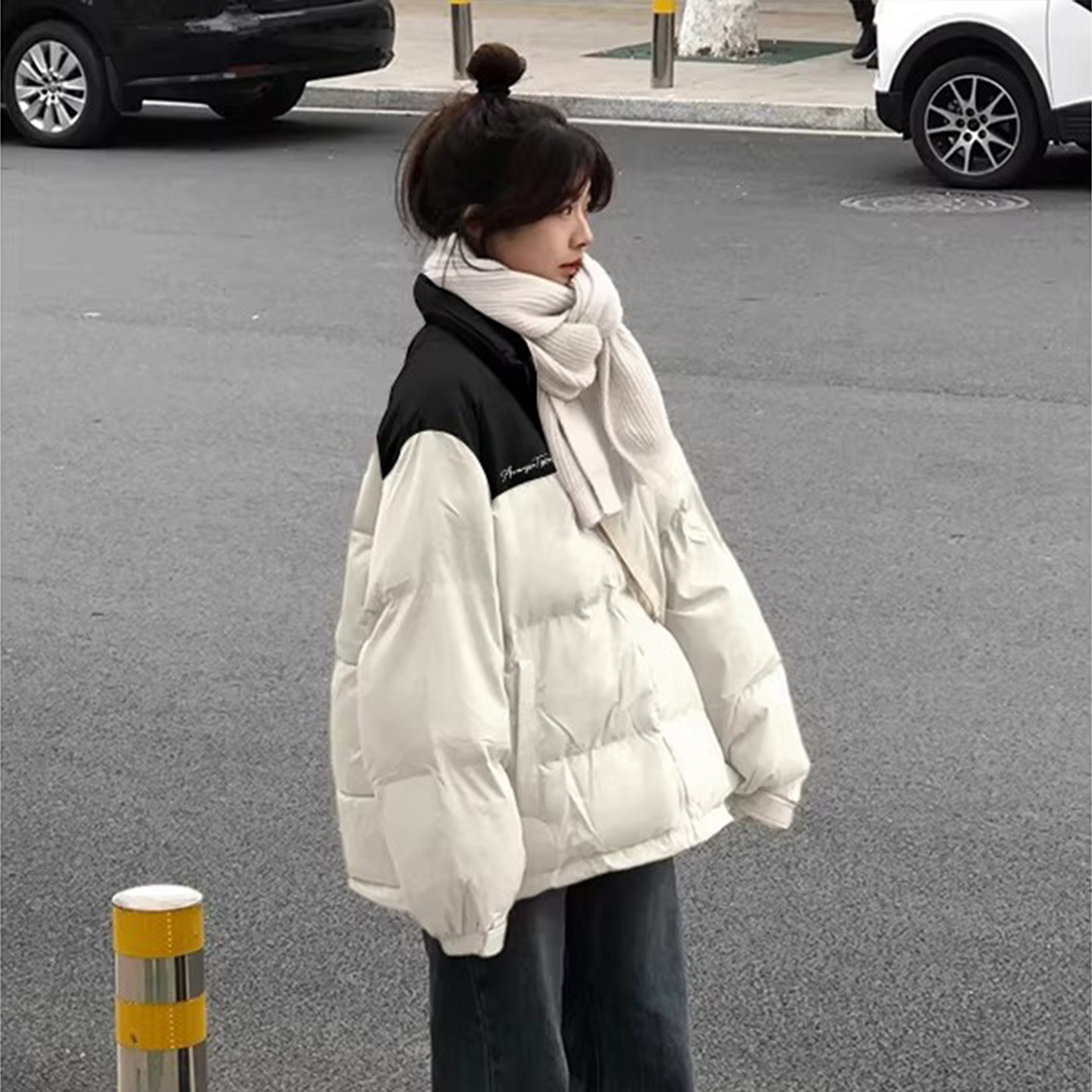 撞色羽绒棉服女大童冬季初中高中学生加厚保暖中长款小个子外套