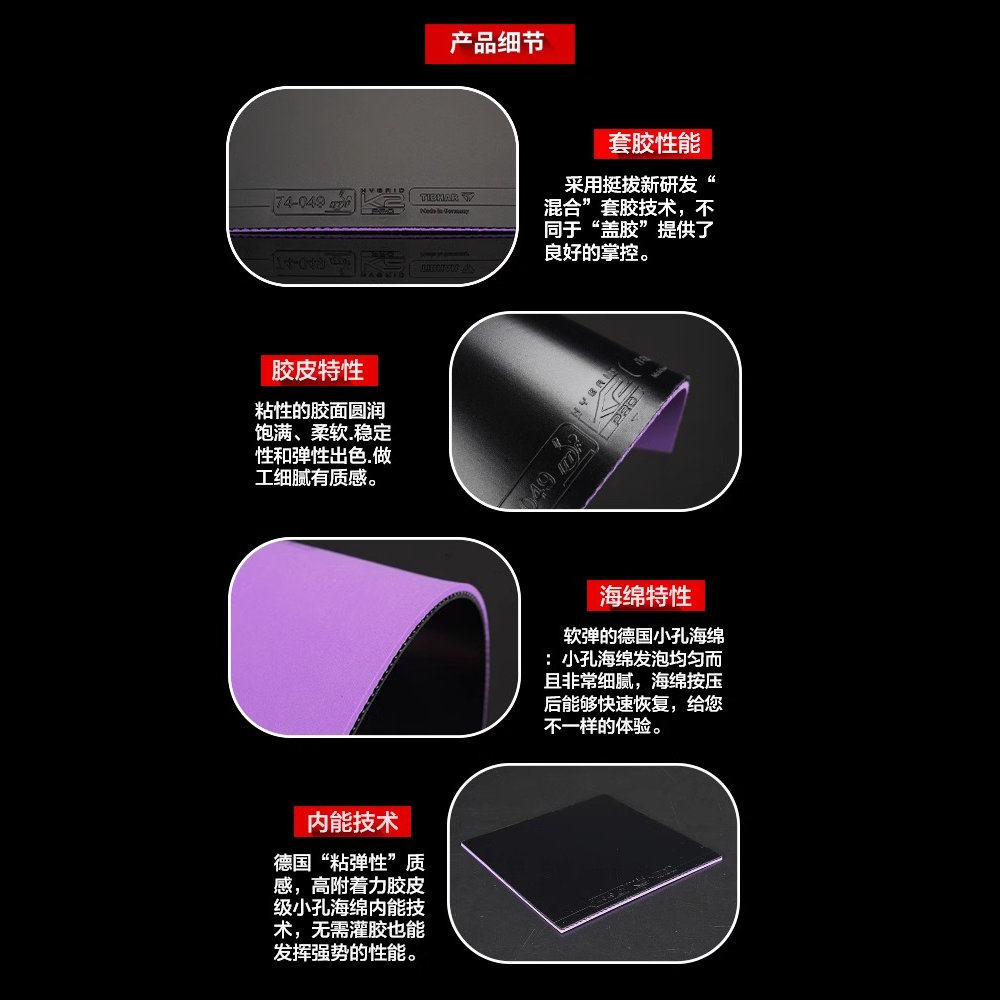 TIHBAR挺拔乒乓球胶皮新款K2Pro紫金专业快攻型球拍套胶粘性反胶
