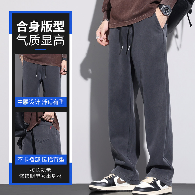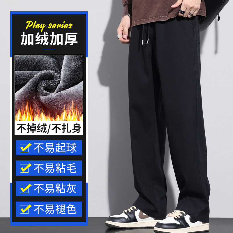 罗蒙加绒裤子冬季男款垂感直筒裤男士宽松休闲长裤秋冬潮牌阔腿裤