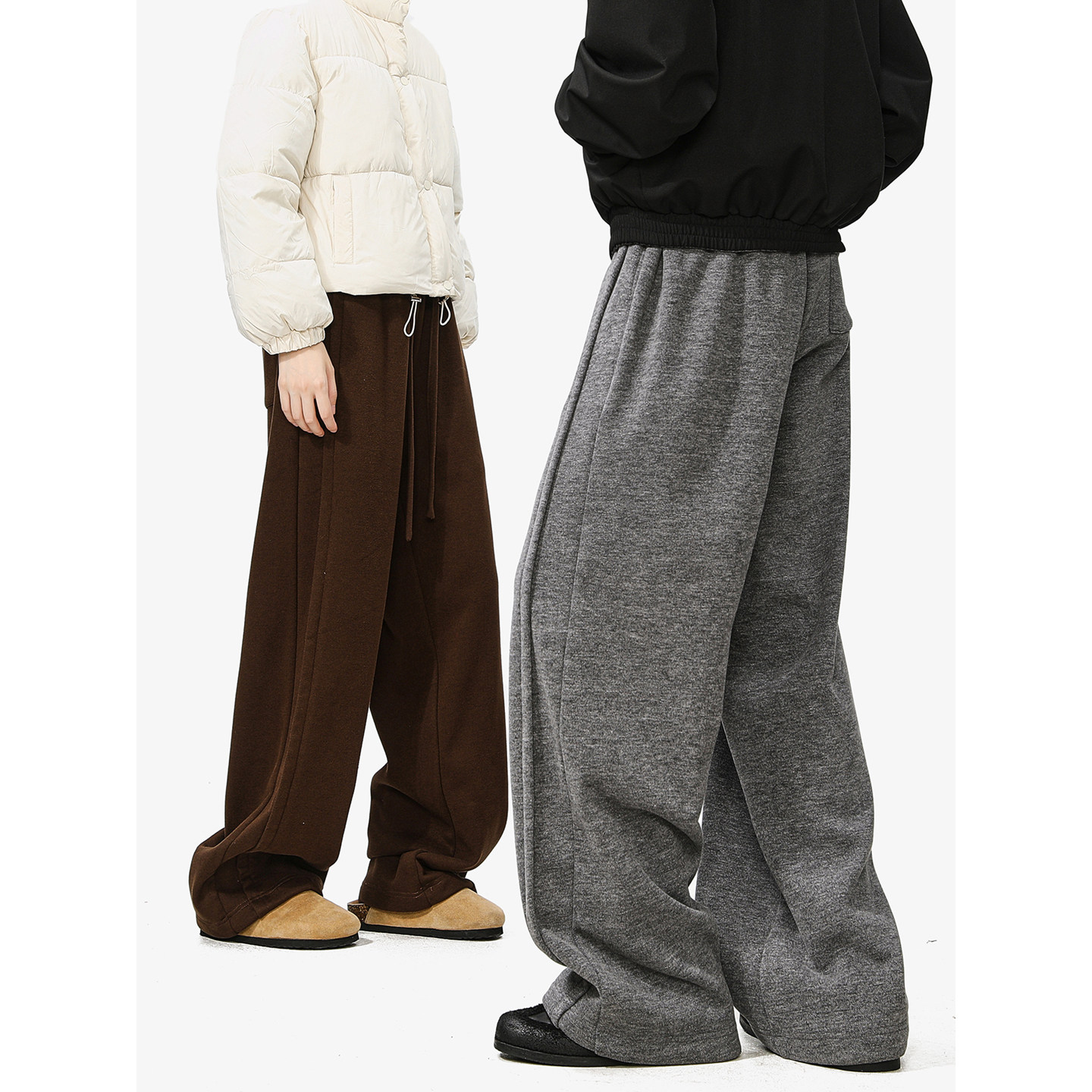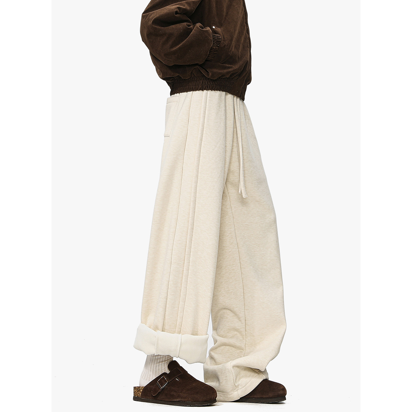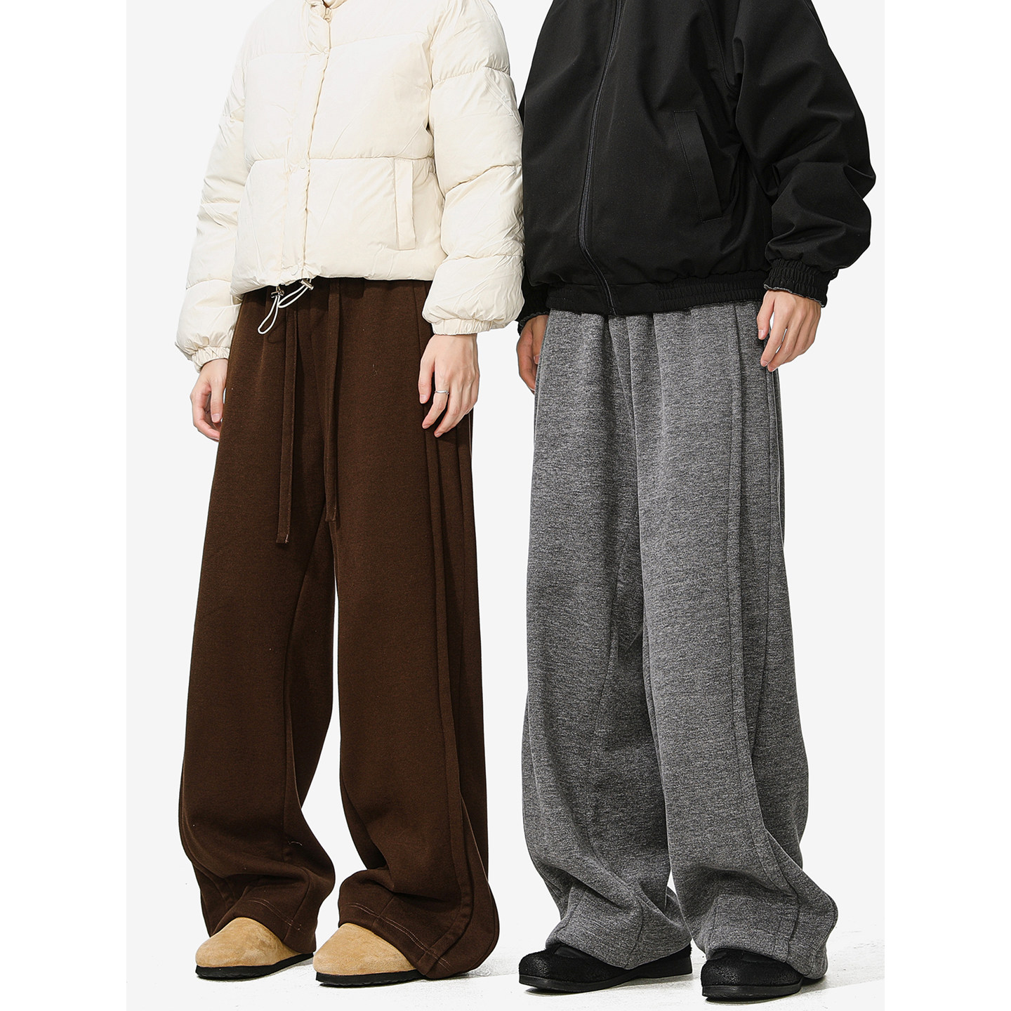 MANYSTON美式高街加绒休闲裤男款冬季加厚直筒宽松垂感慵懒风裤子