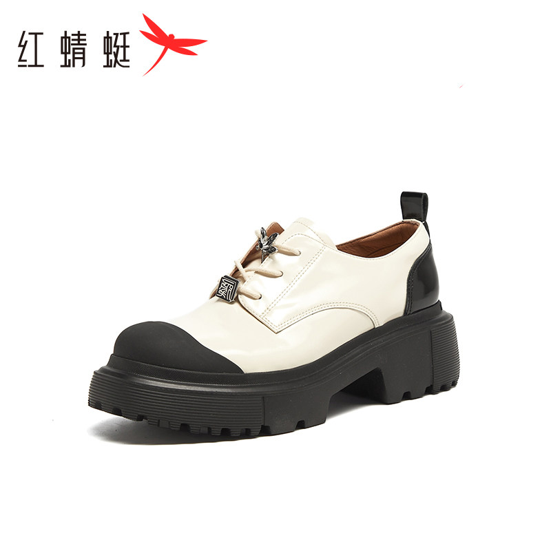 商场专柜同款红蜻蜓厚底系带小皮鞋春秋新款女鞋通勤复古透气单鞋