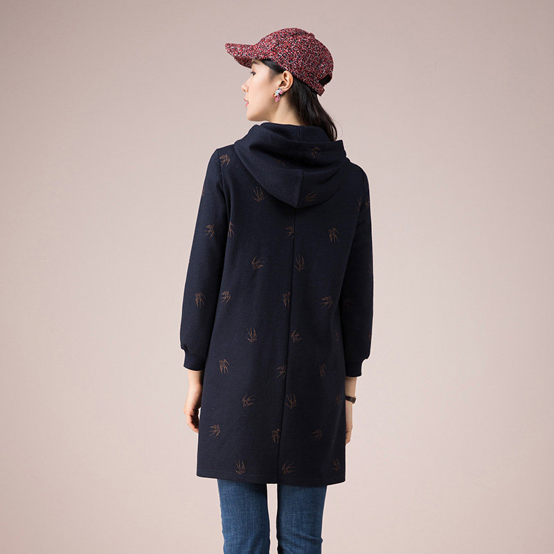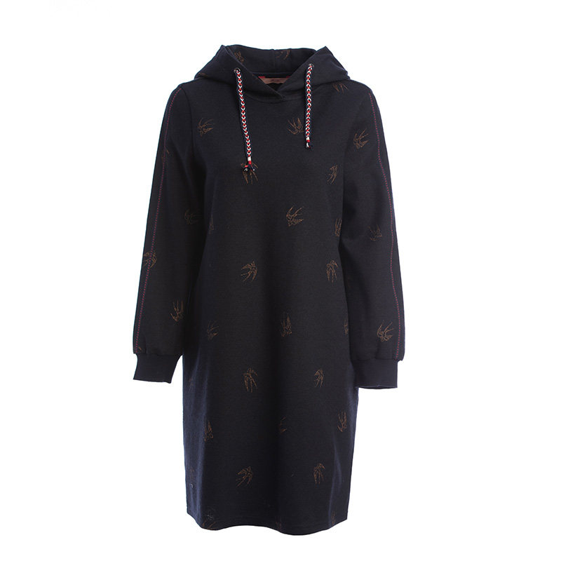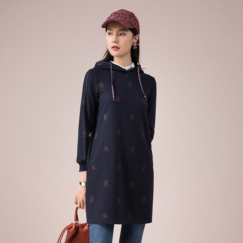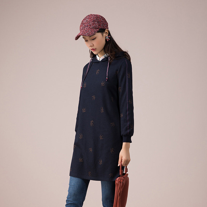渔服饰女装新款秋冬装宽松绣花针织羊毛连帽连衣裙女FGED0049