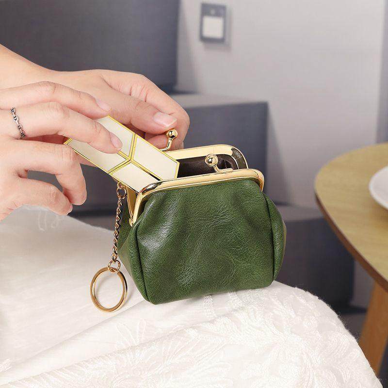 新款高档时尚零钱包吻锁女款真皮质感小钱包便携钥匙包口红收纳包