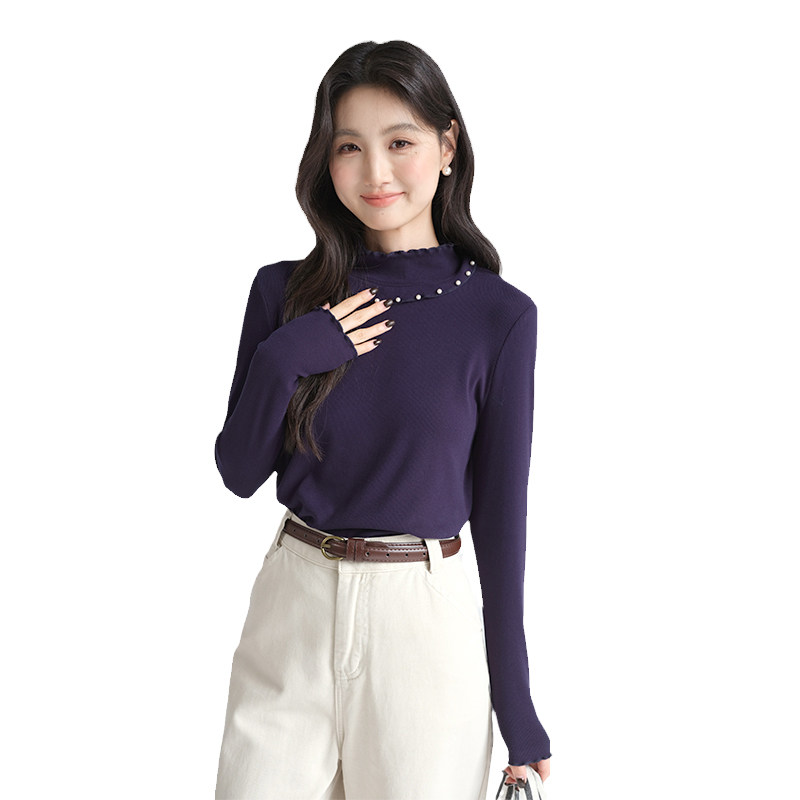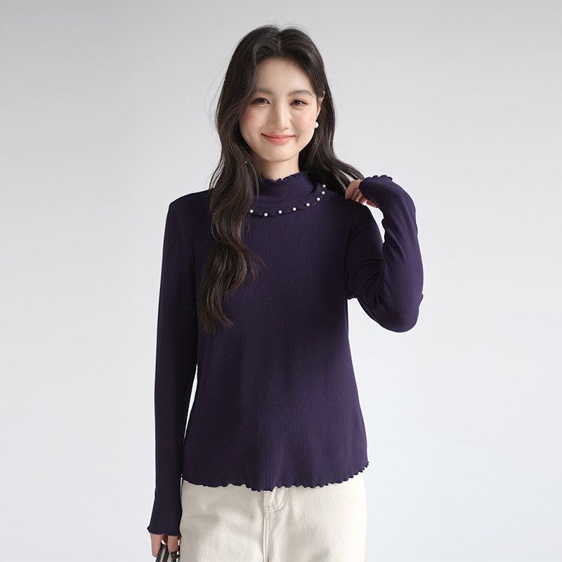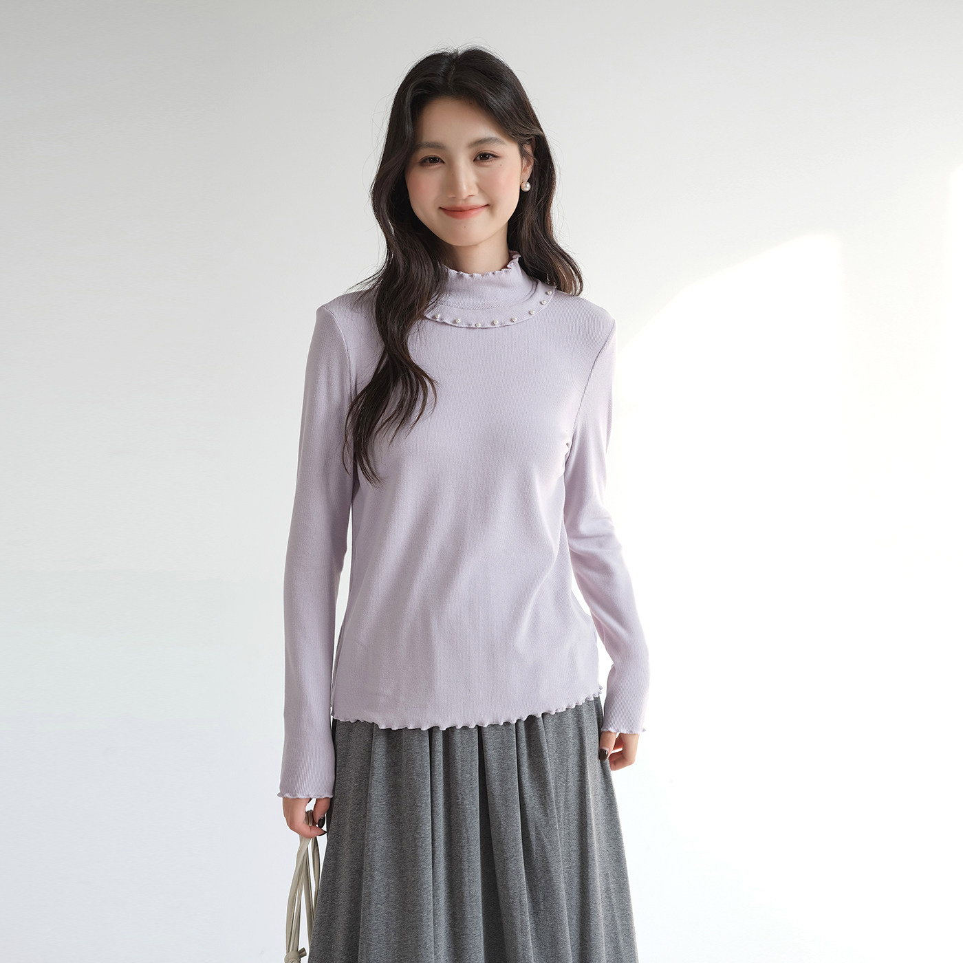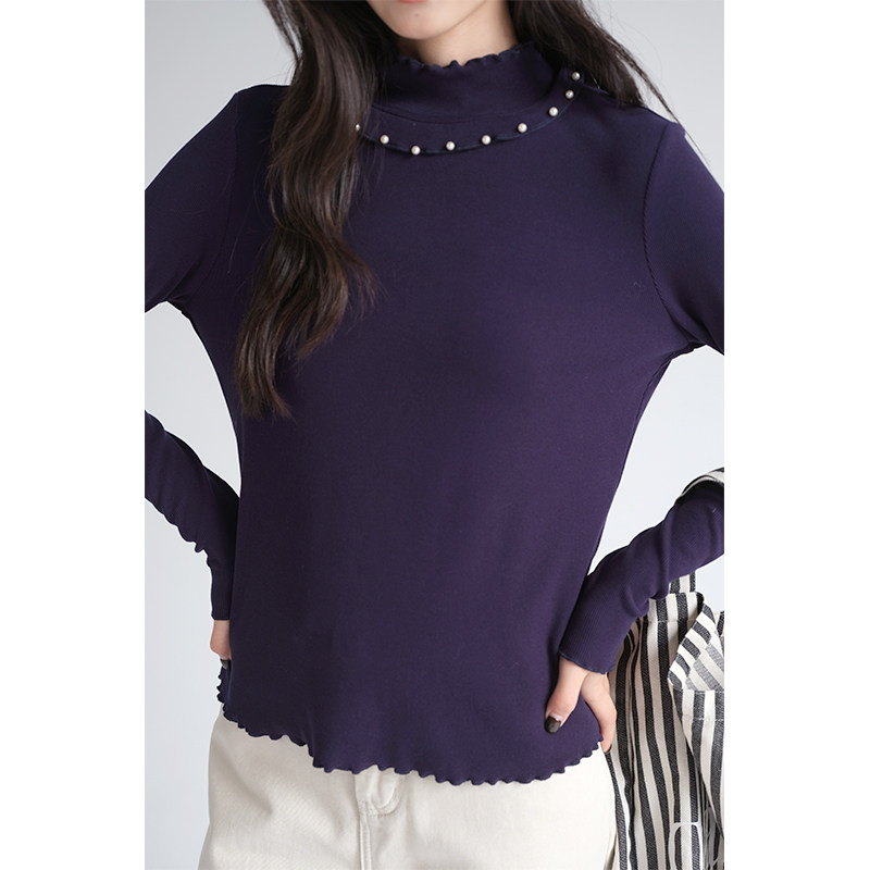 311线报网描述:复古木耳边半高领钉珠针织衫显瘦气质上衣女