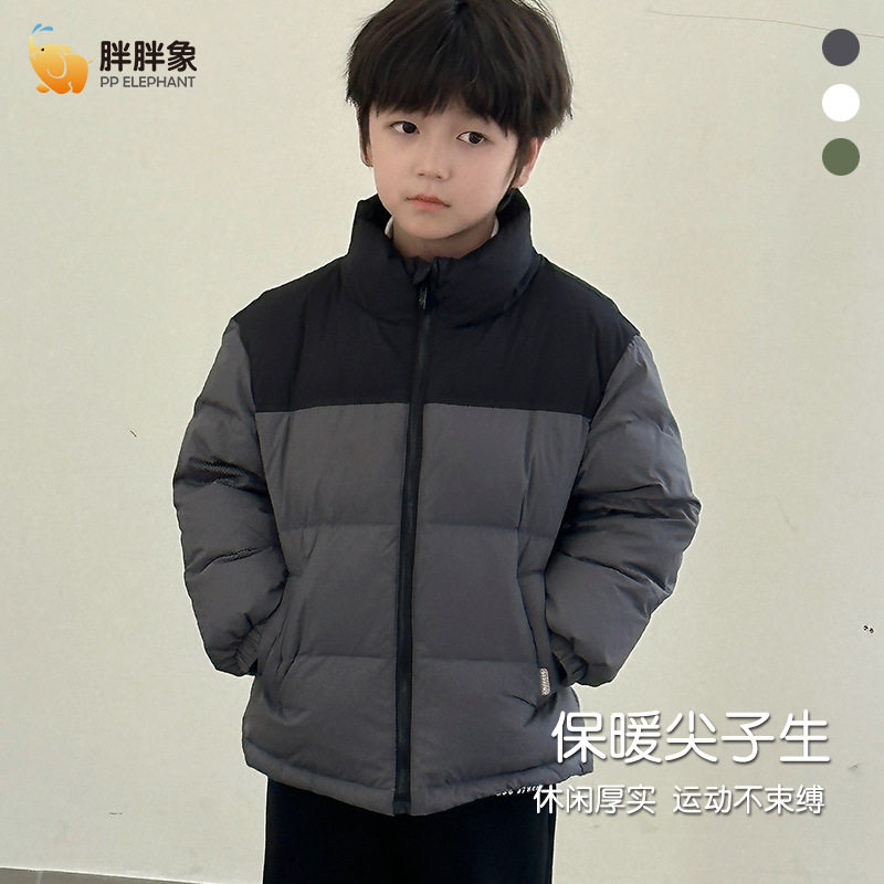 秋冬新款男女儿童小孩白鸭绒立领短款羽绒服 中大童拼色外穿 外套