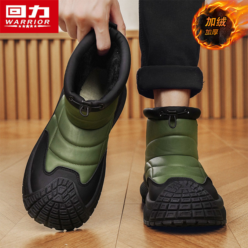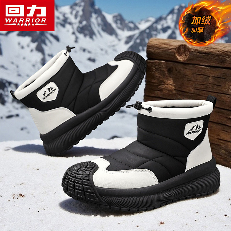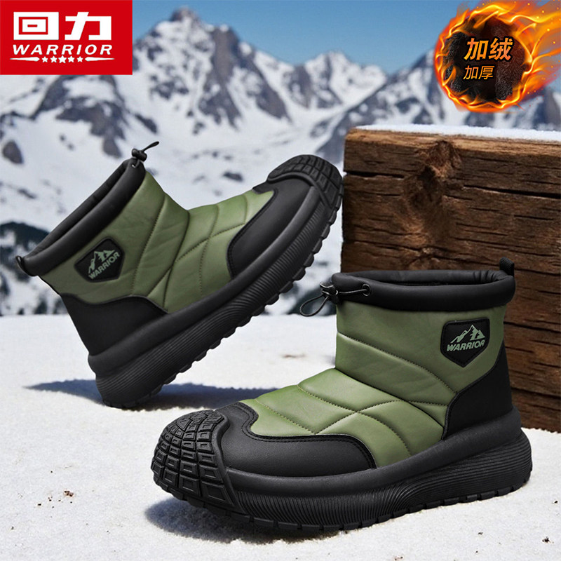 回力防水雪地靴男士冬季加绒加厚保暖皮毛一体短筒棉鞋男士棉靴子