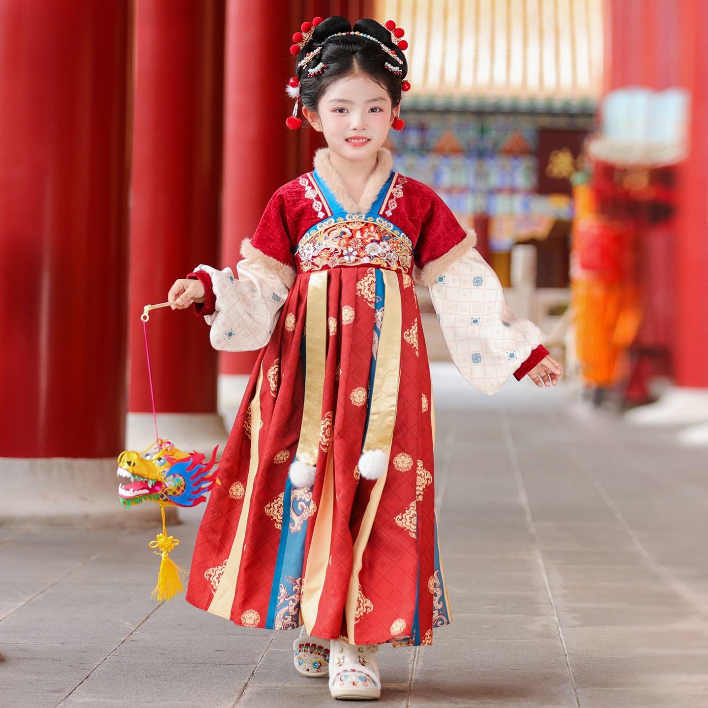 汉服女童冬季2026新款古装连衣裙儿童拜年服国风唐装女孩古风裙子