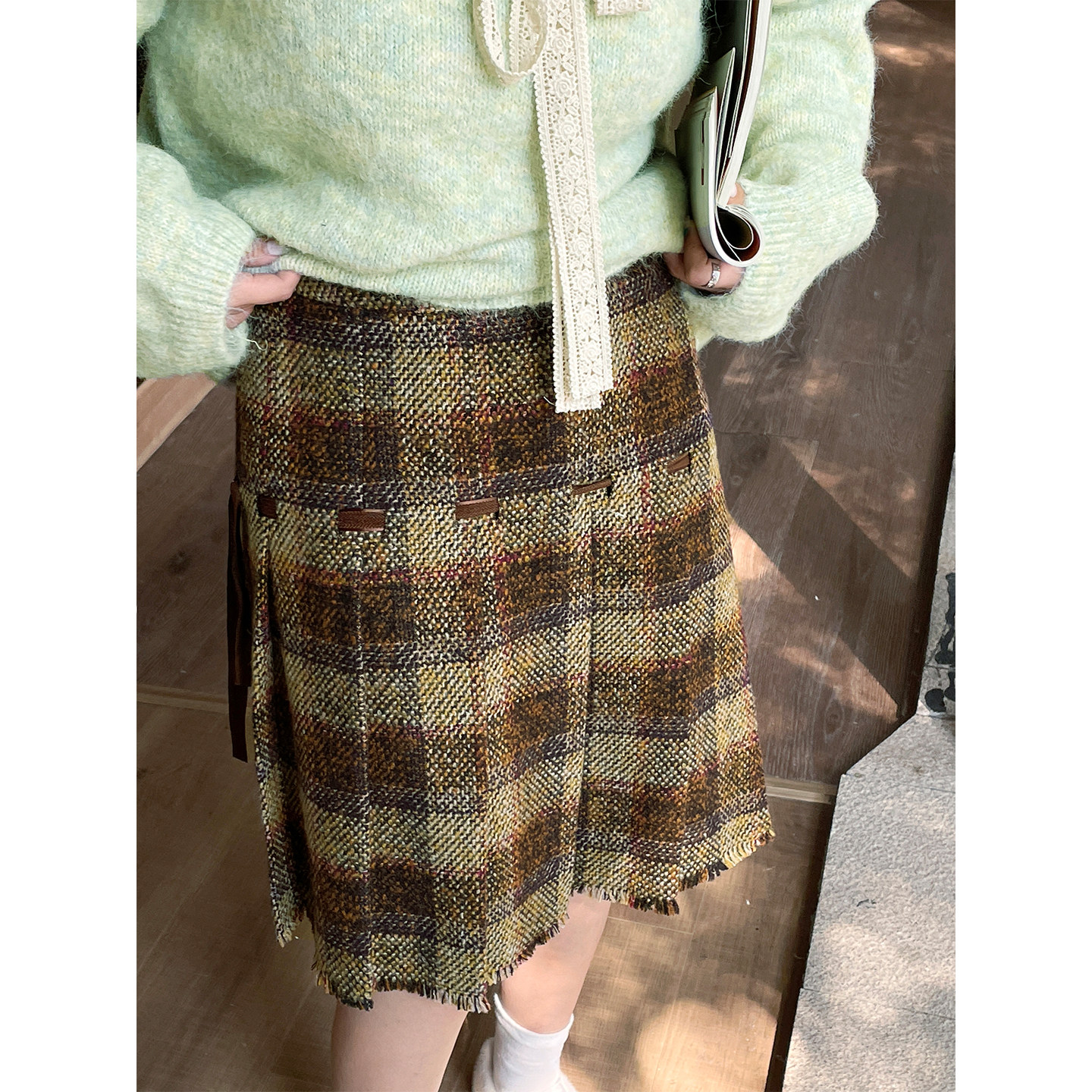 大码女装胖mm绝美巨好看的冬装格纹半身裙2026春季新款加厚短裙子