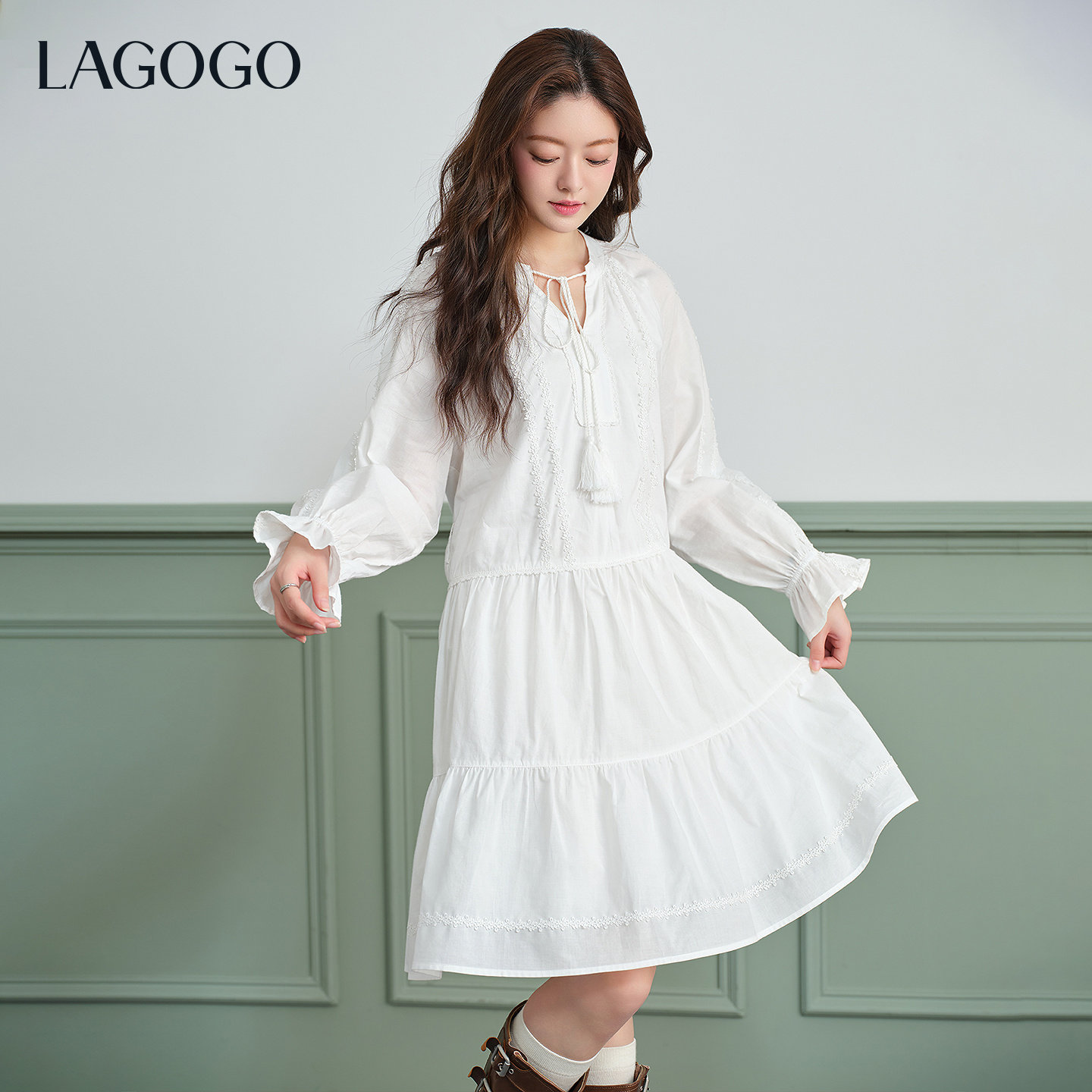 311线报网描述:多层蛋糕裙版型 蕾丝刺绣+流苏抽绳