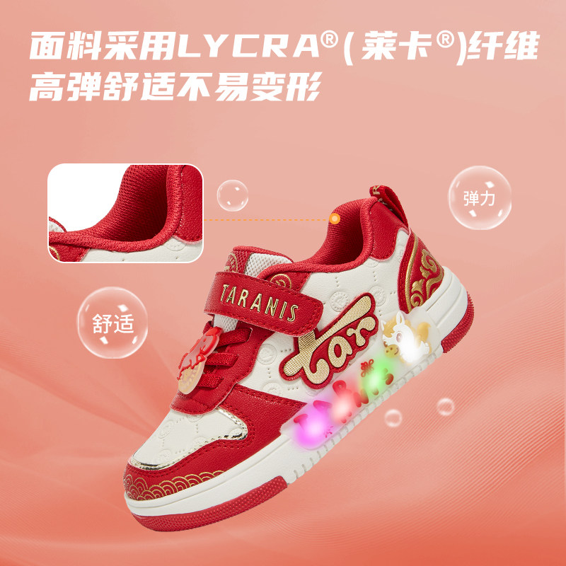 泰兰尼斯儿童飞马闪灯板鞋2026新年款女男童板鞋柔软舒适高帮板鞋