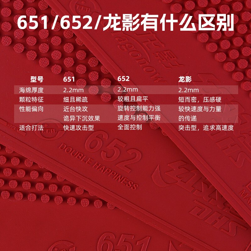 红双喜乒乓球拍胶皮龙影正胶套胶651乒乓球胶皮652颗粒高胶快攻型