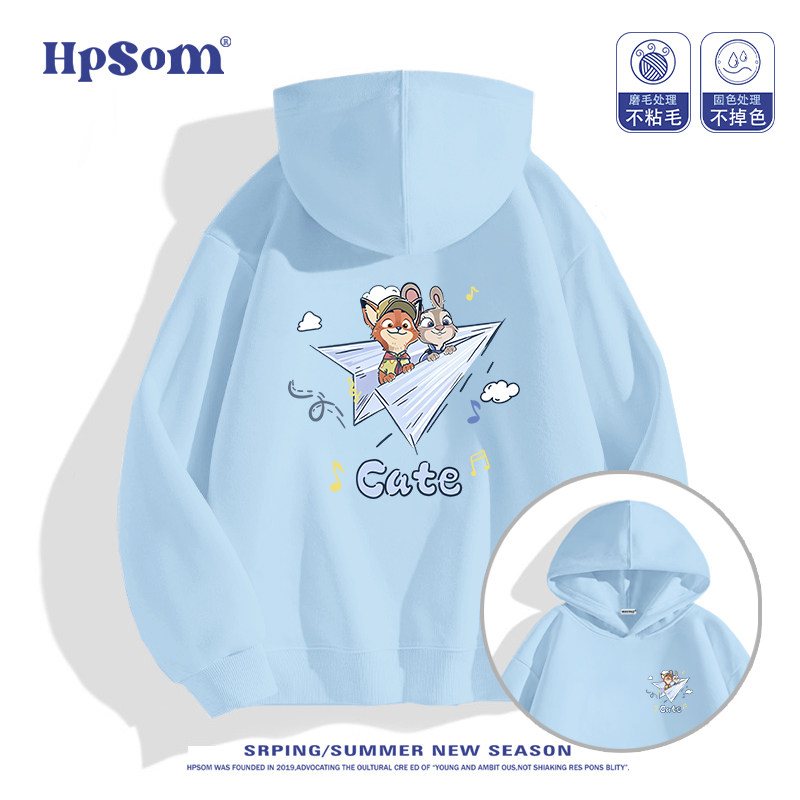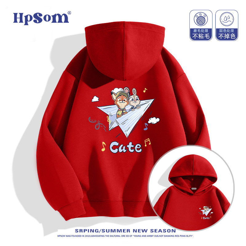 儿童黑色连帽卫衣2026新款秋冬季朱迪尼克狐狸兔子加绒加厚男女孩