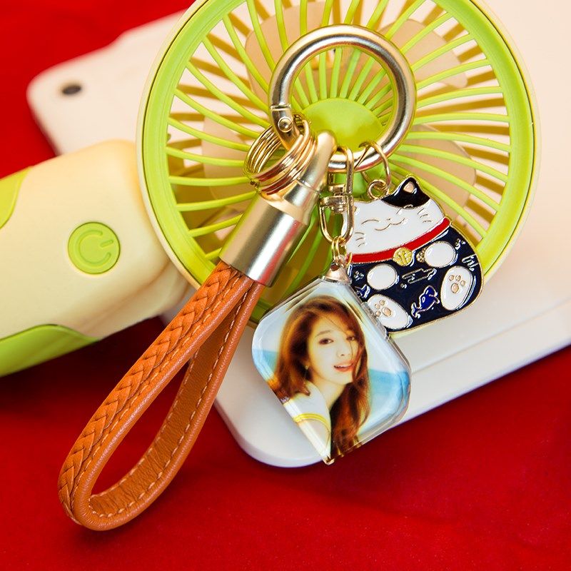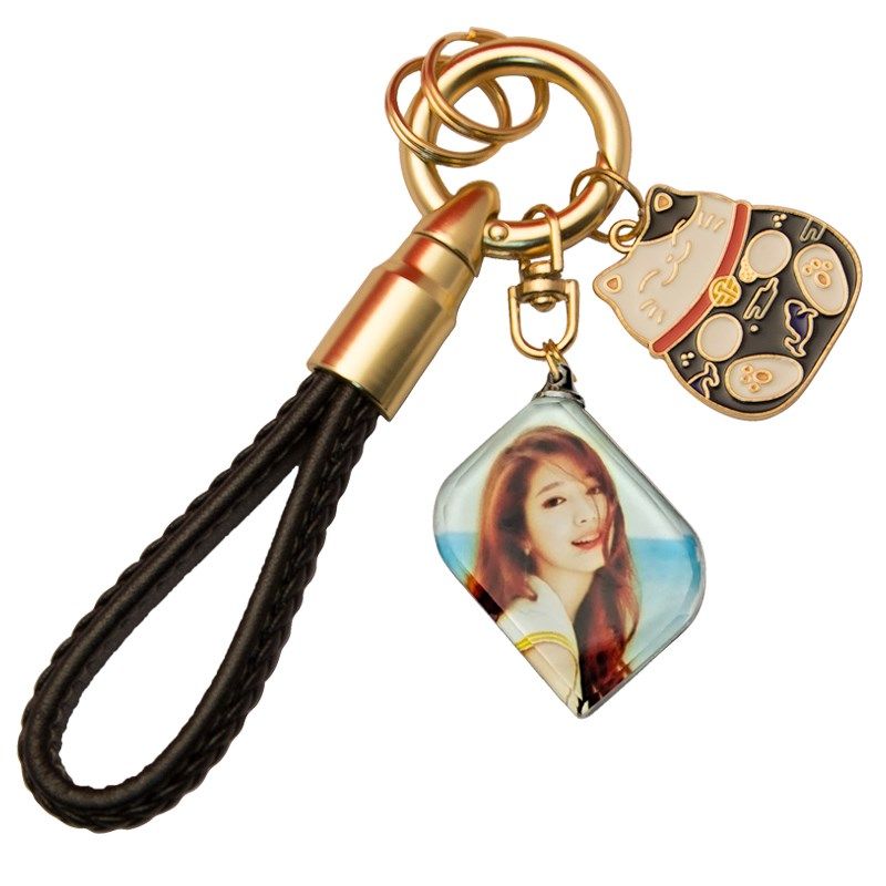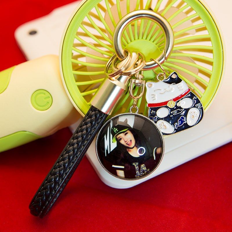水晶双面照片定制钥匙扣汽车腰手绳挂件DIY创意情侣生日礼物高档
