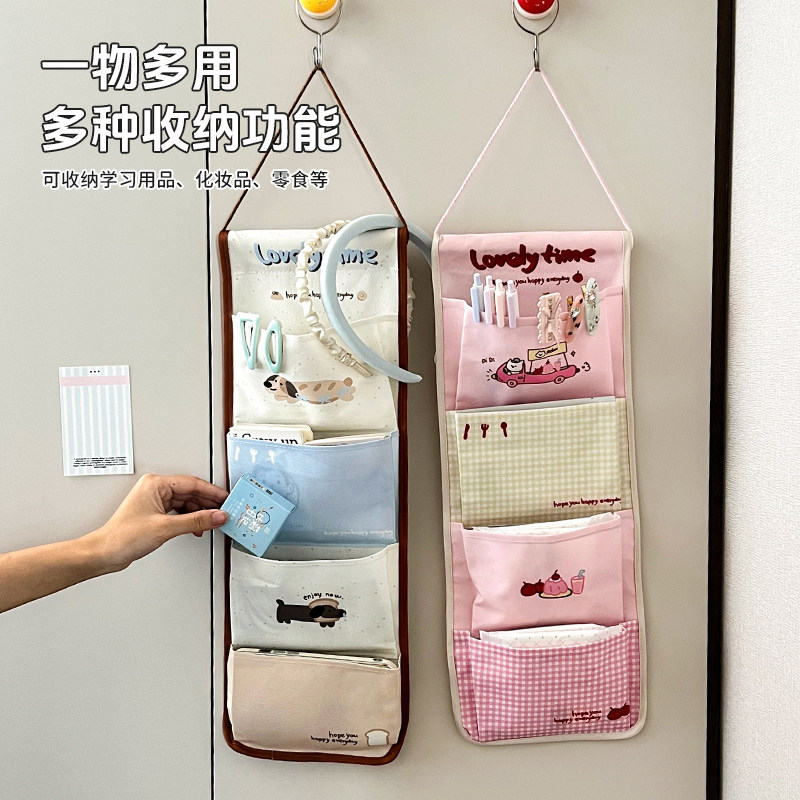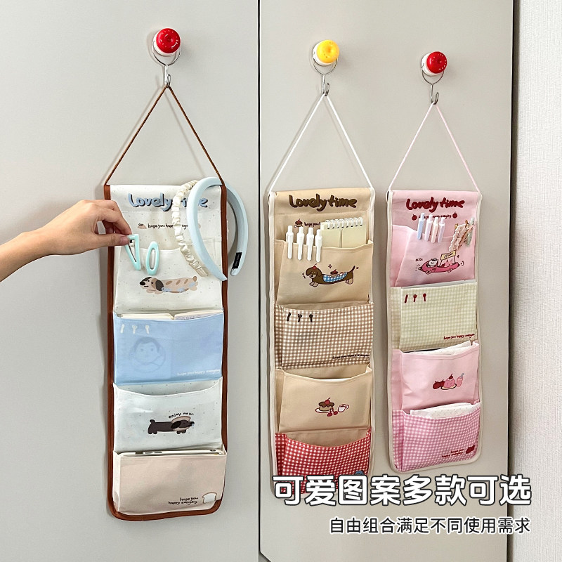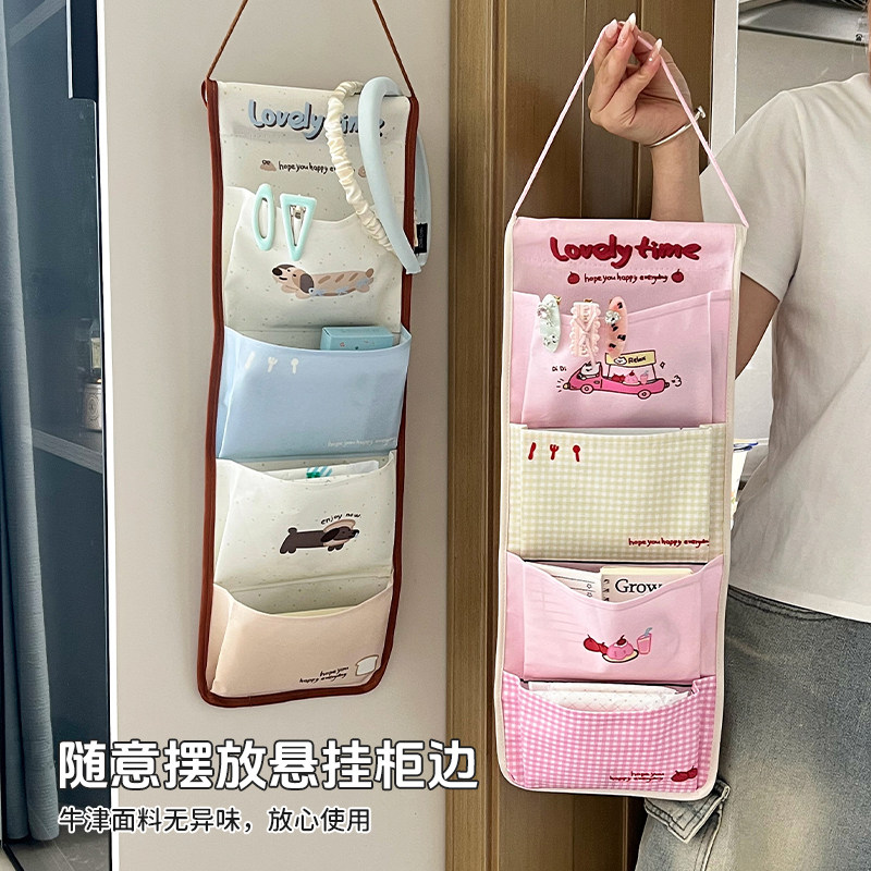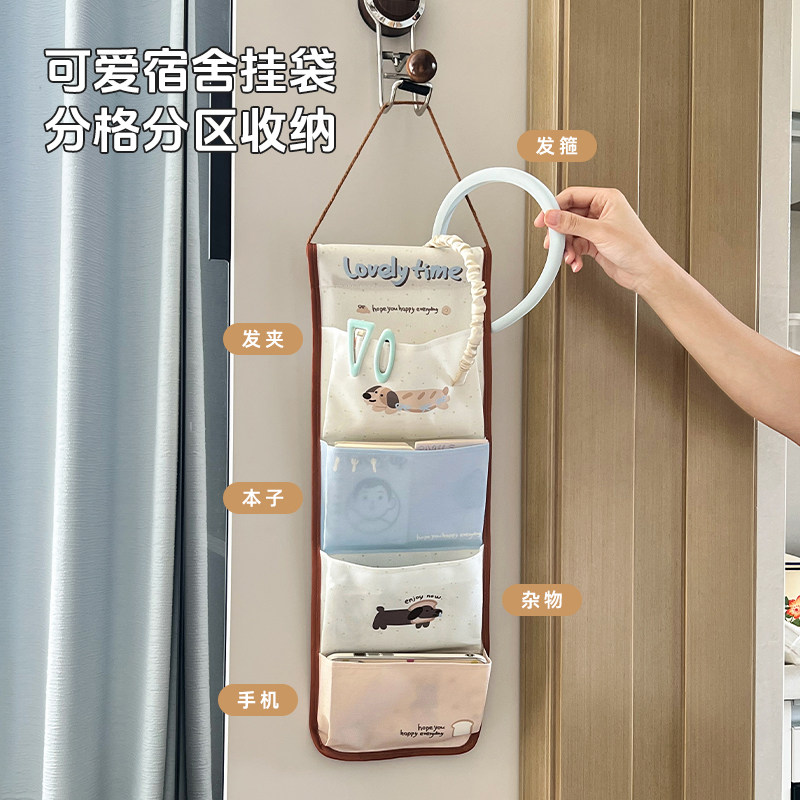 宿舍收纳挂袋床上挂式置物袋上铺放手机壁挂墙上杂物布艺卡通可爱
