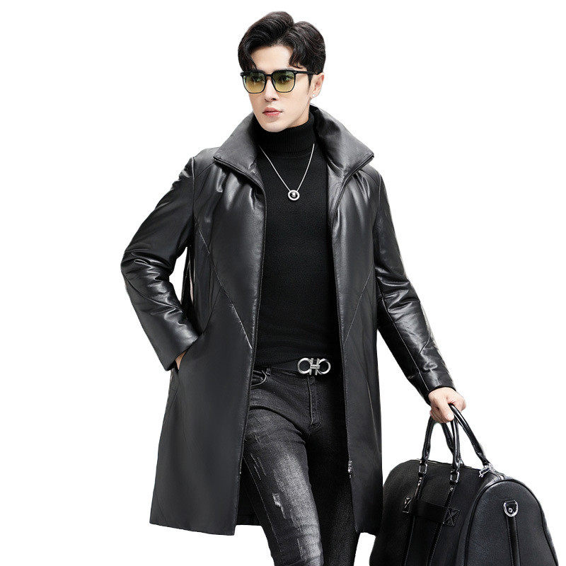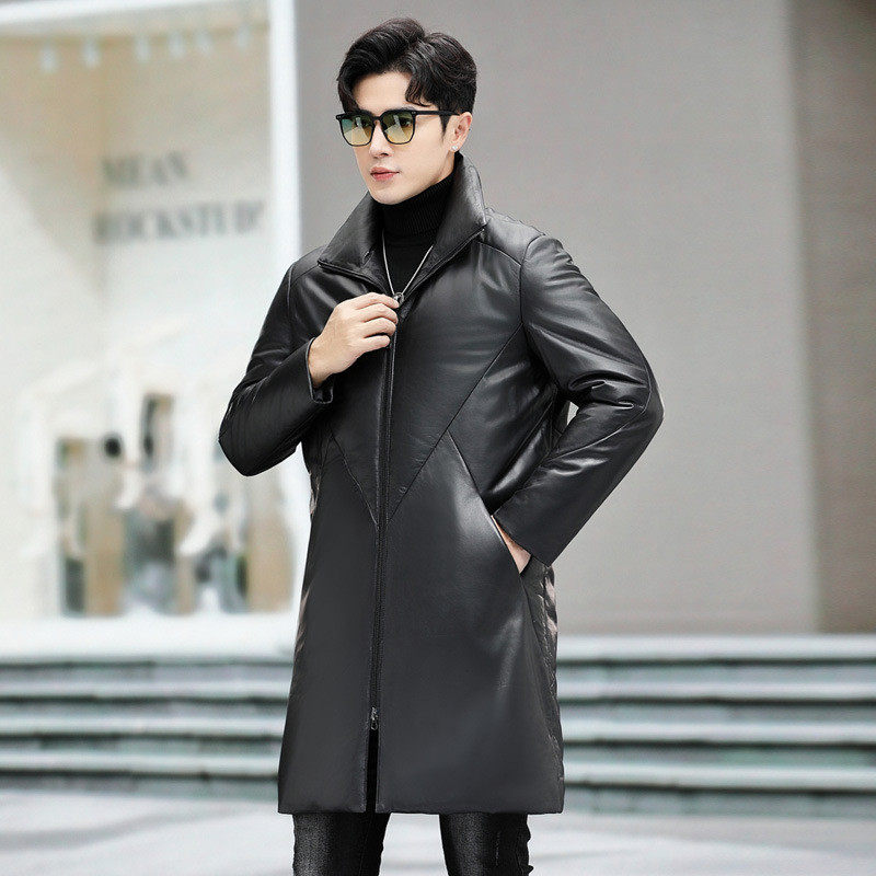 真皮羽绒服男士皮衣中长款过膝海宁绵羊皮大衣加绒加厚冬季外套潮