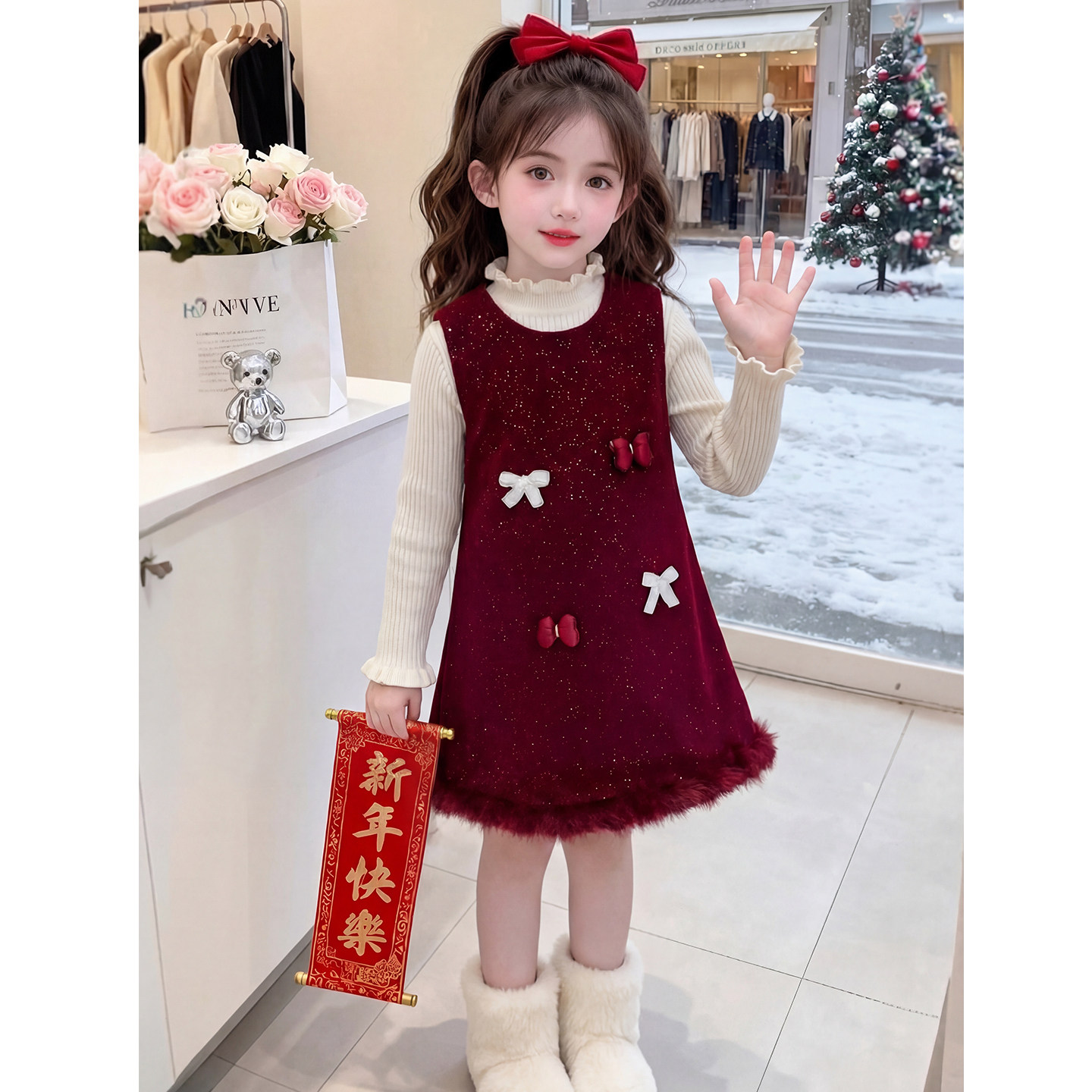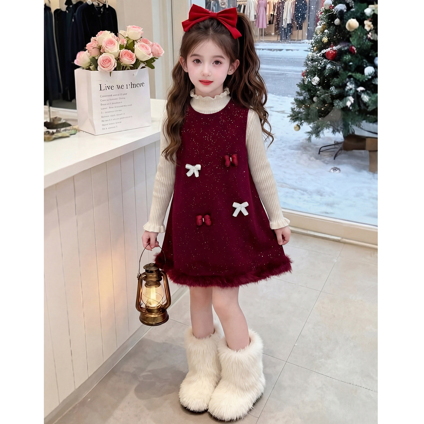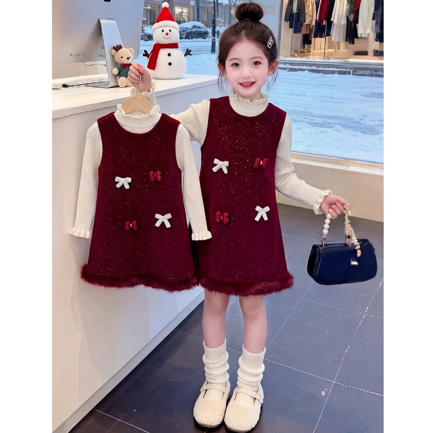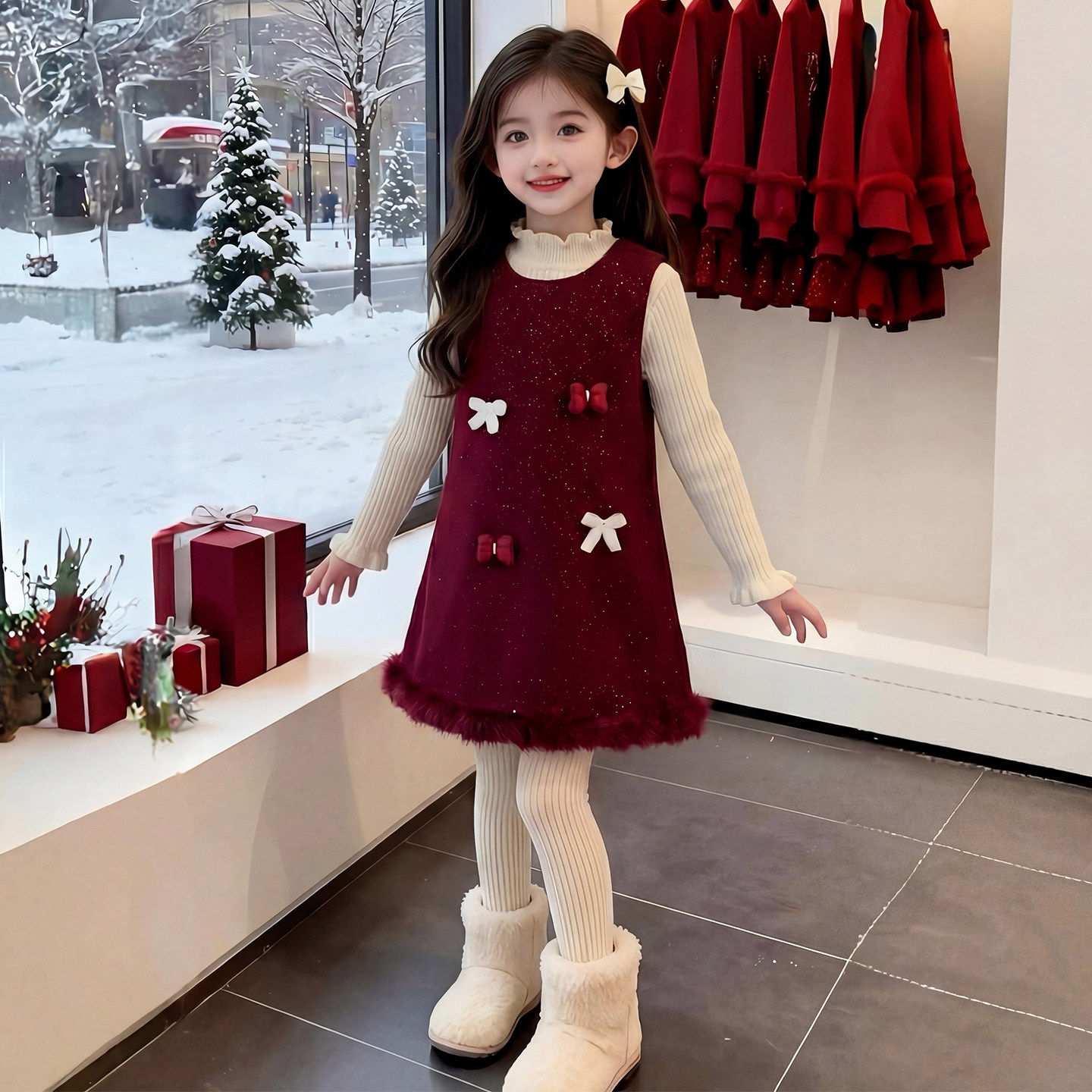 女童连衣裙2026新款冬装儿童网红洋气时髦爆款红色公主裙女孩裙子