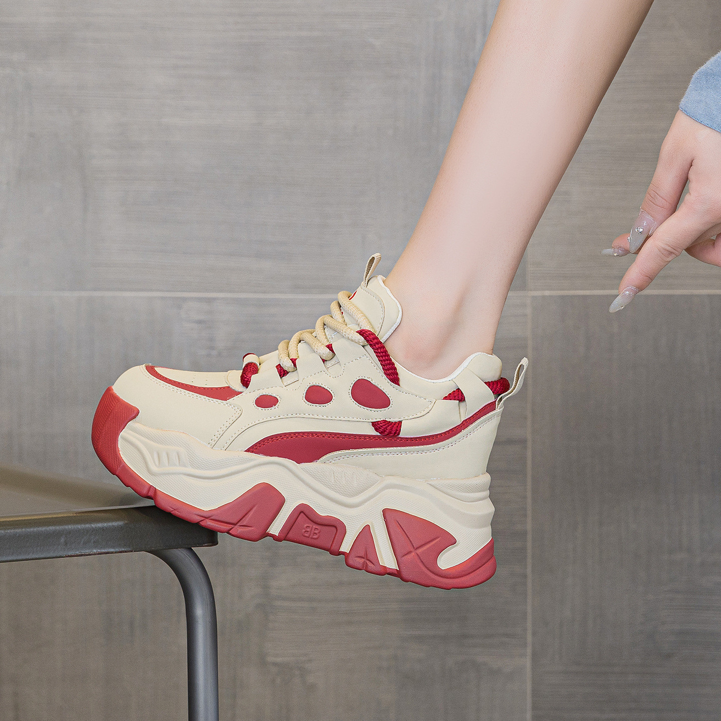 厚底爆款老爹鞋女2025新款内增高红色冬季加绒运动休闲松糕鞋百搭