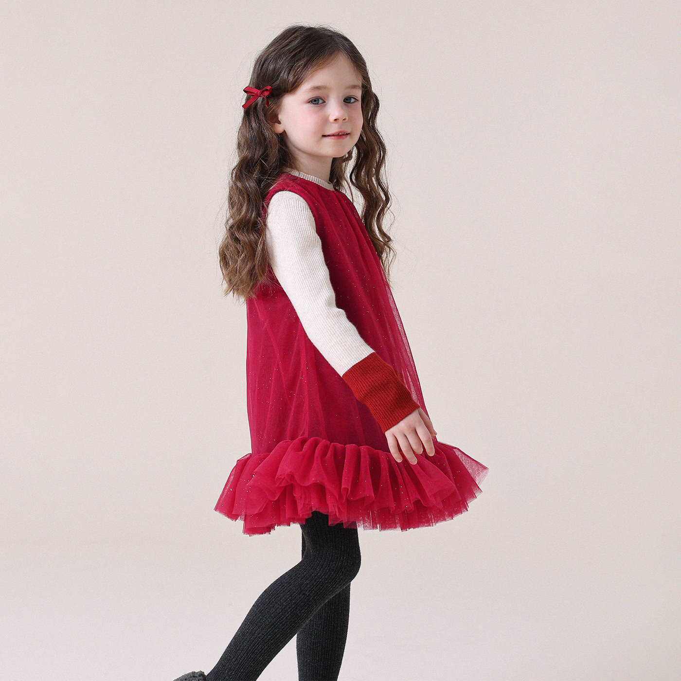 允儿妈女童2026新年花边蕾丝背心裙宝宝时尚连衣裙儿童新款拜年服