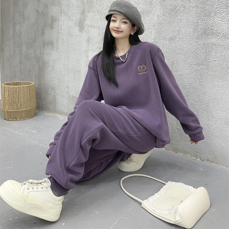 高级感运动套装女秋冬季新款宽松韩版加绒加厚卫衣束脚长裤两件套