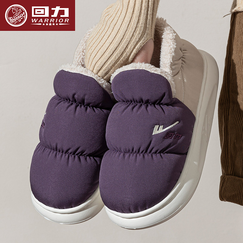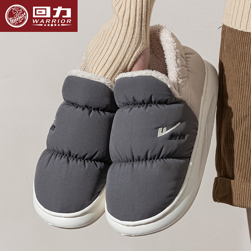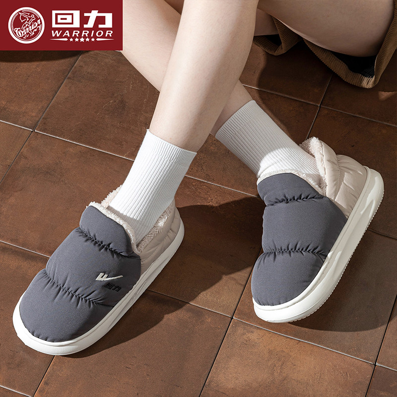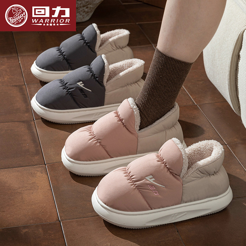 回力防水棉拖鞋羽绒布男女冬天新款室内厚底防滑保暖家居鞋男H169