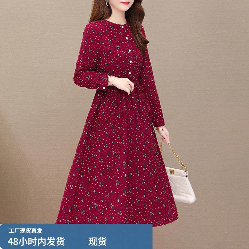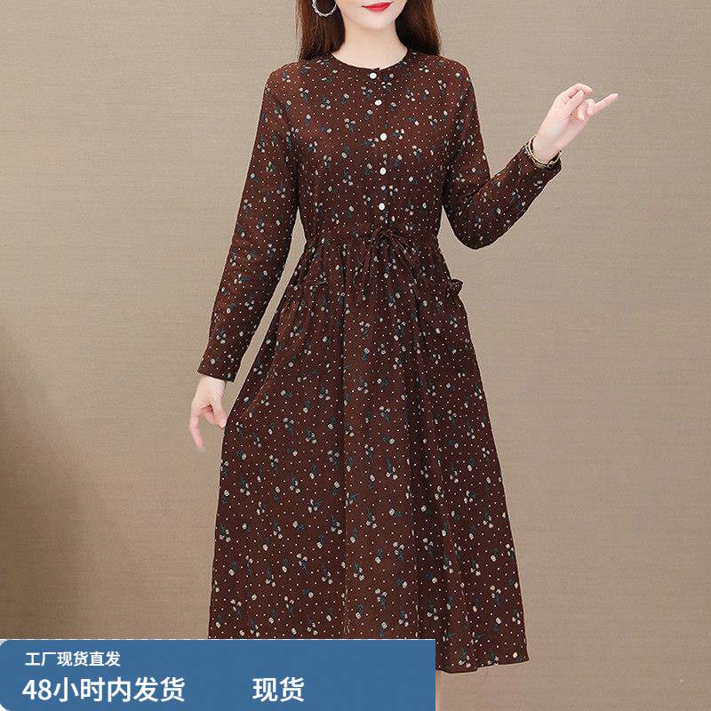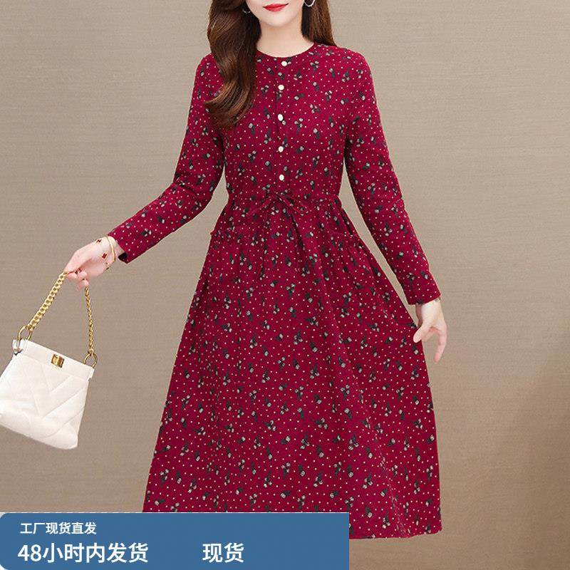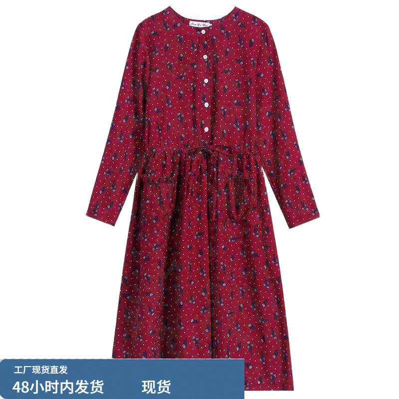 棉麻长袖连衣裙女士2025新款春秋款高档品牌中老年妈妈中长款裙子