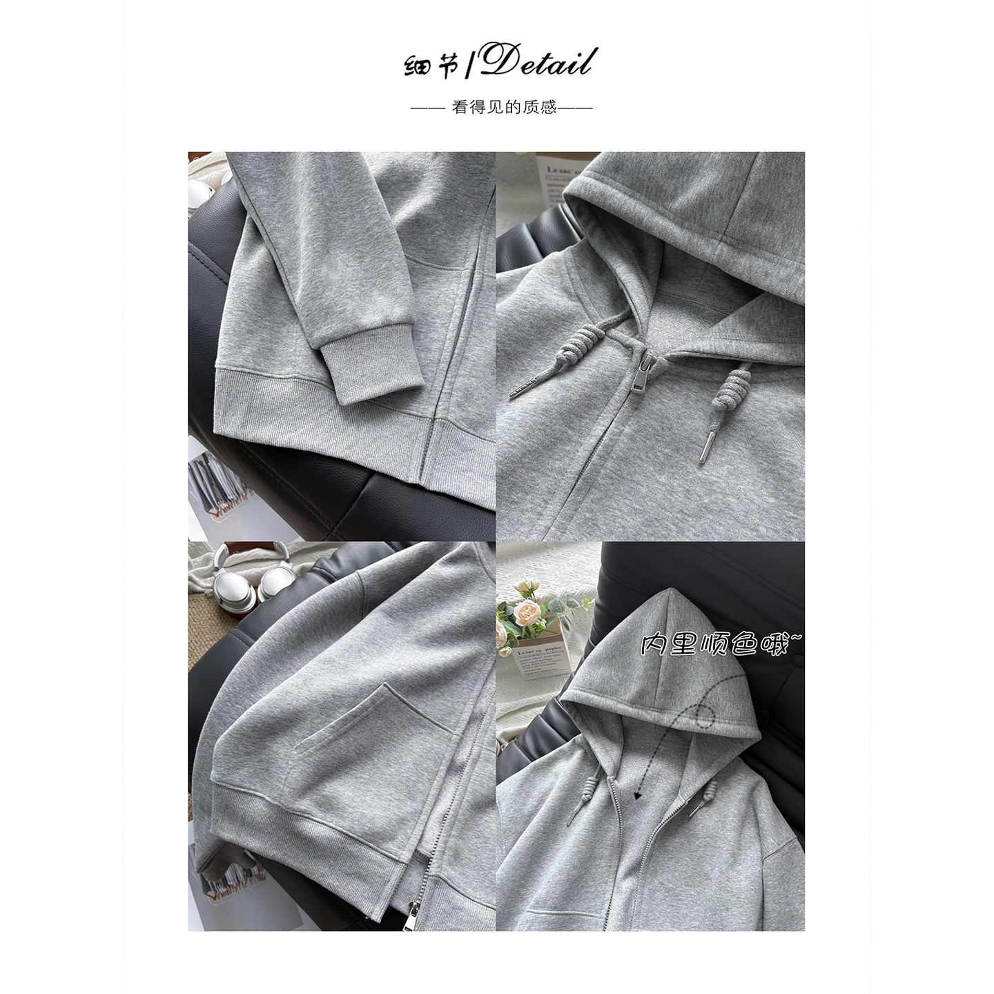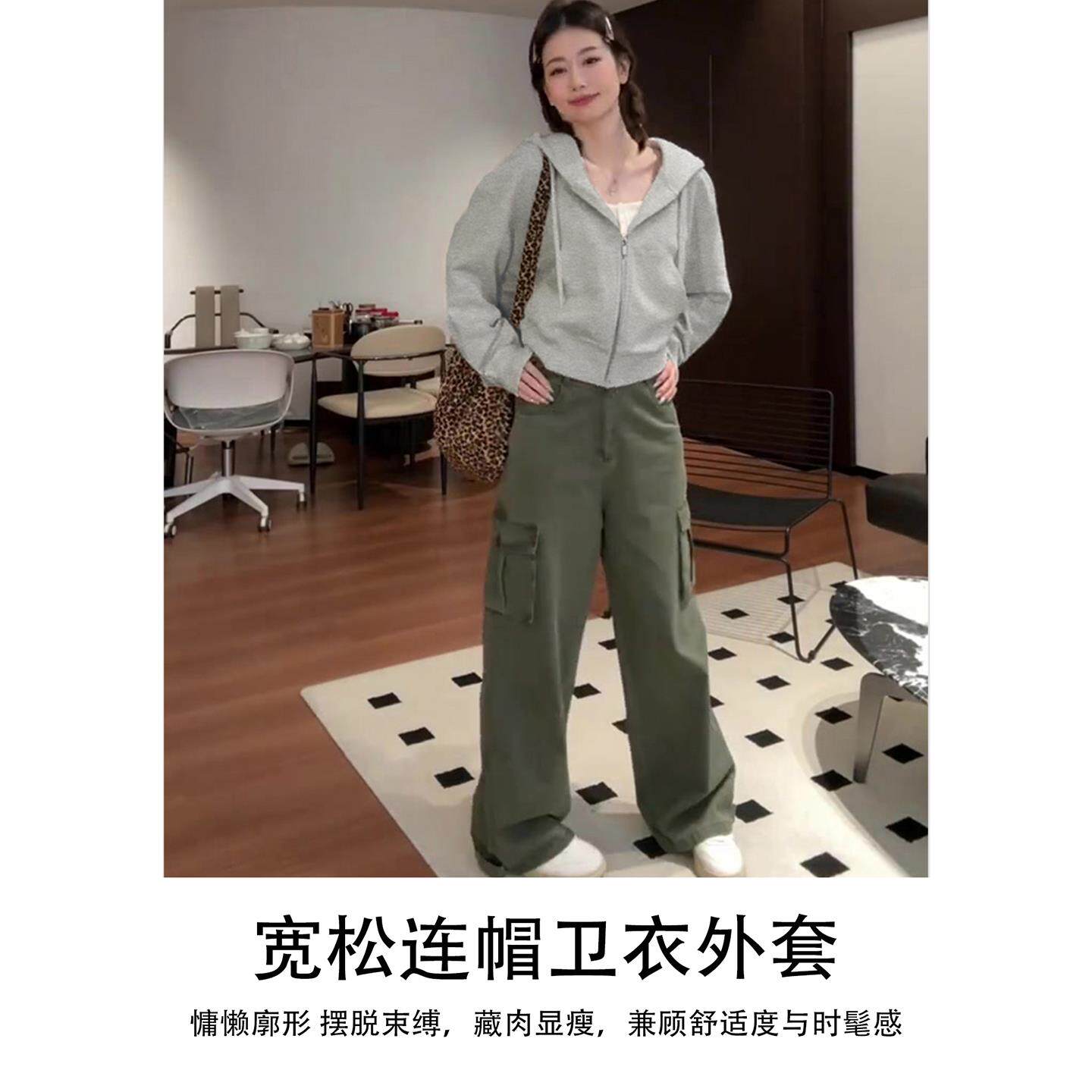 灰色短款连帽卫衣拉链外套女款秋修身小个子开衫薄款上衣秋冬穿搭