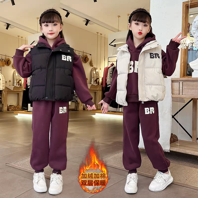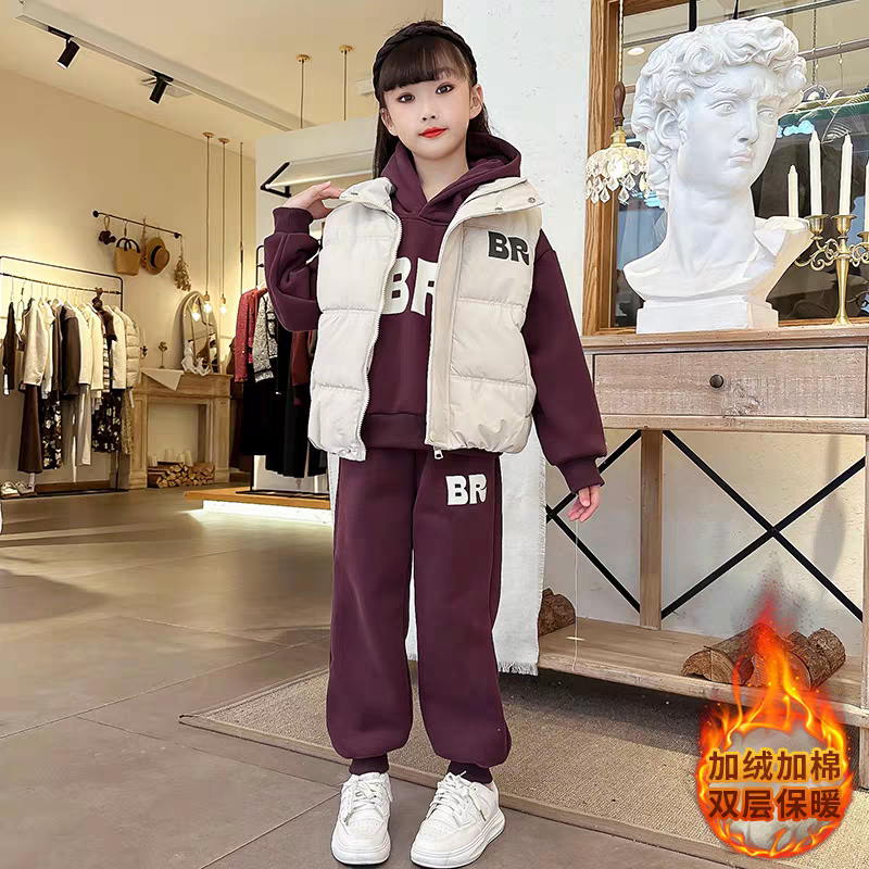 女童套装秋冬款2025新款洋气女宝宝冬季加绒加厚衣服女孩冬装卫衣