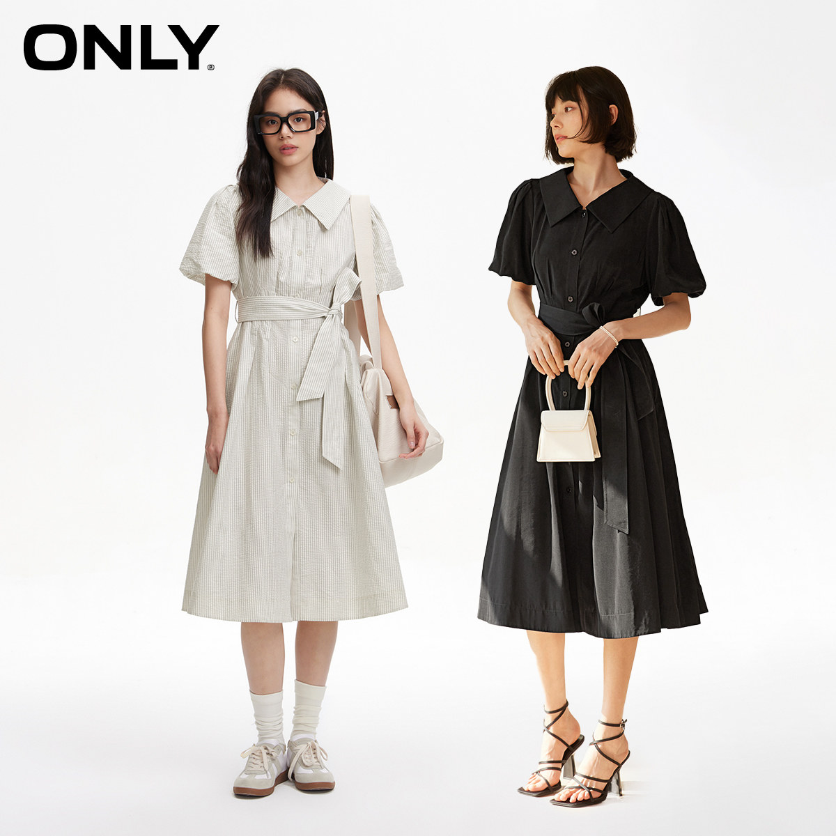 【ONLY奥莱】秋冬气质百搭中长款A字收腰衬衫连衣裙女