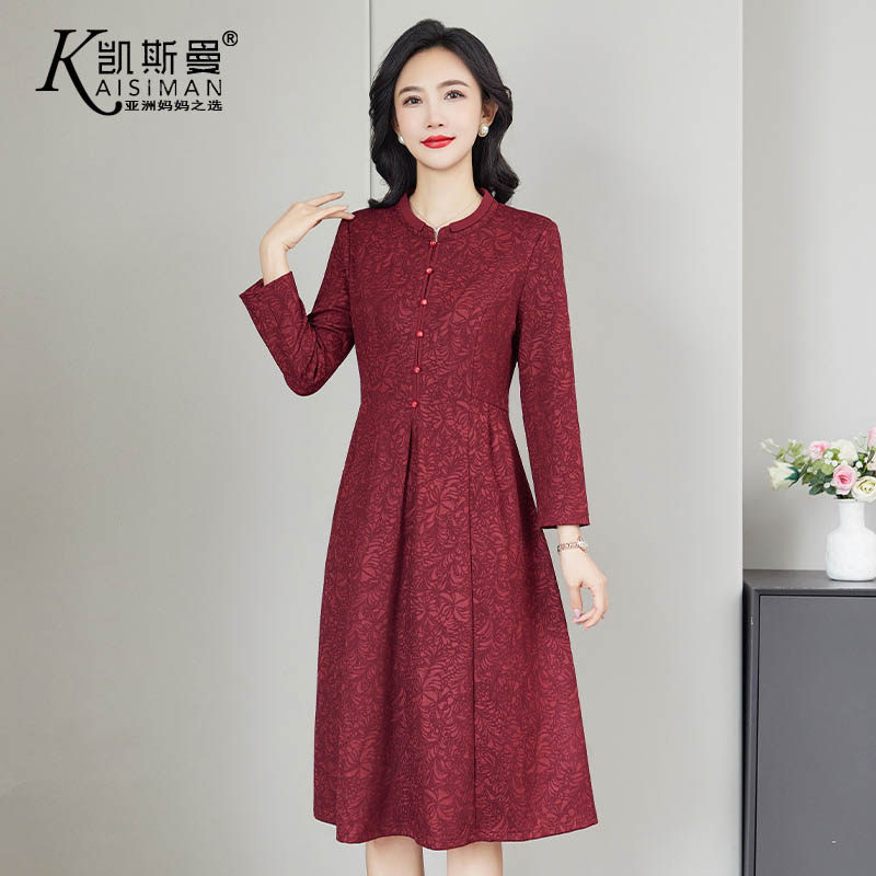 凯斯曼中老年洋气妈妈结婚礼服女装2025新款秋冬连衣裙长袖春A818