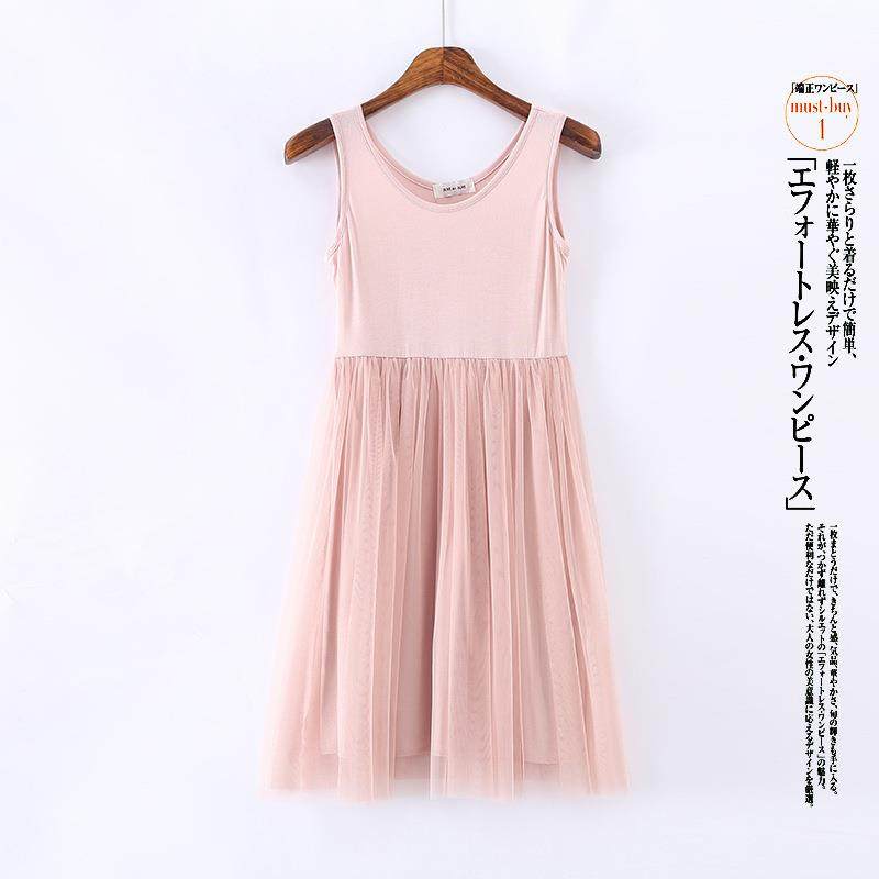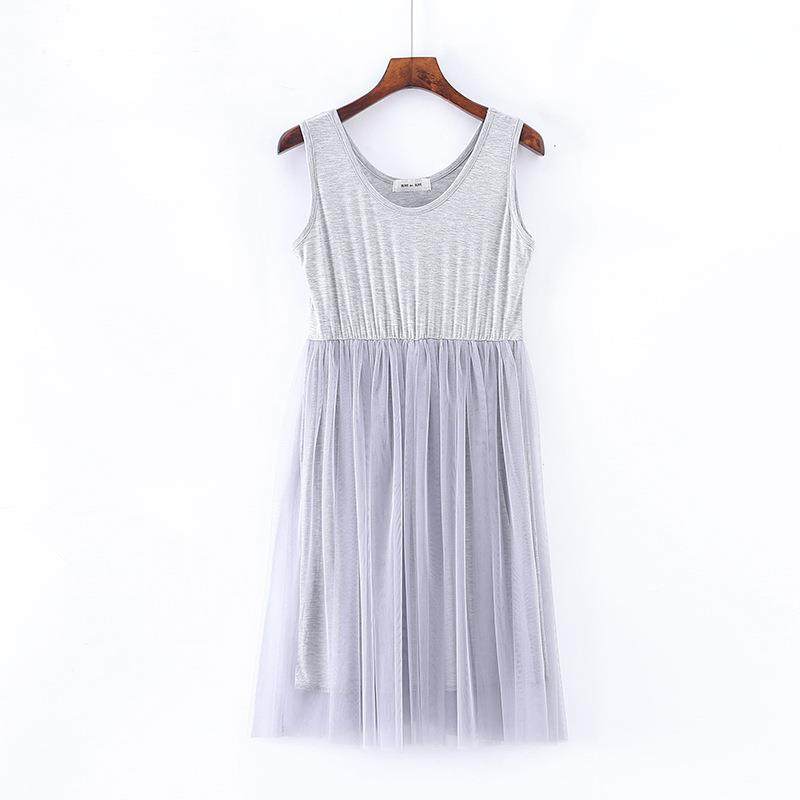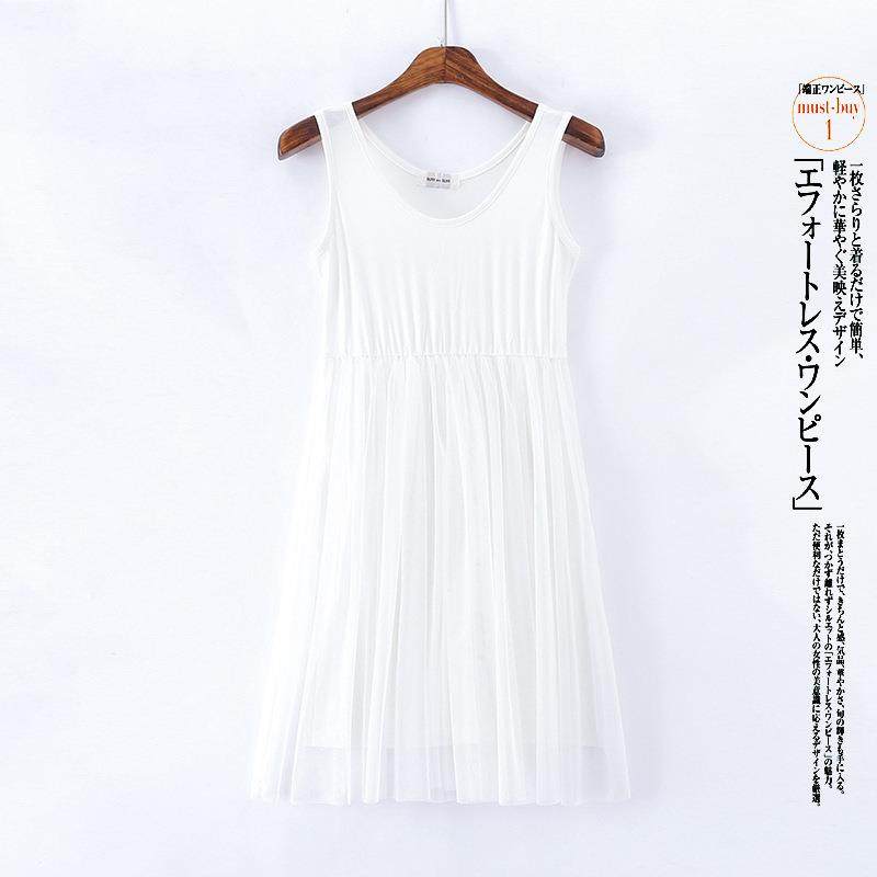 中短款高腰莫代尔拼接网纱背心裙甜美蕾丝打底裙连衣裙大码内搭裙
