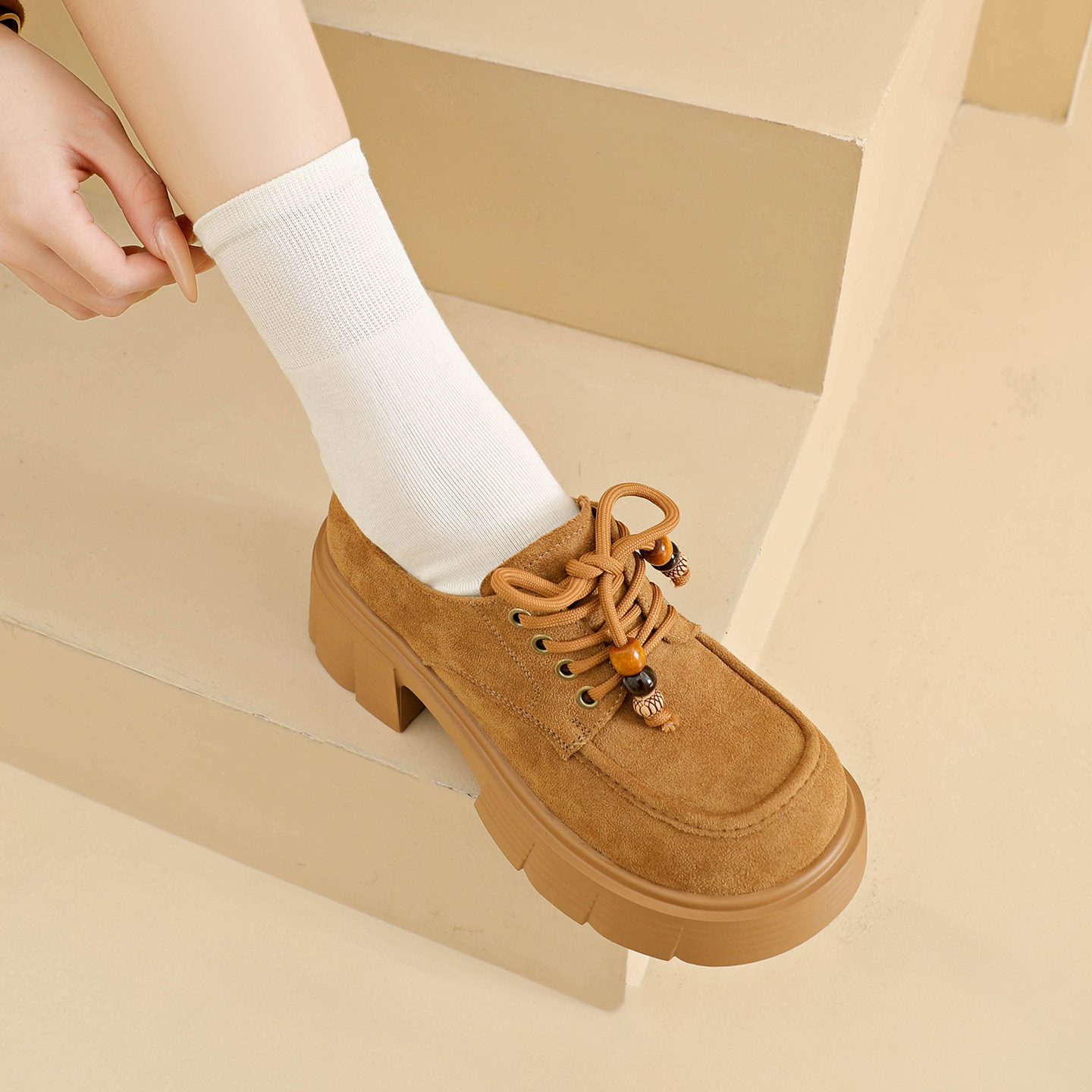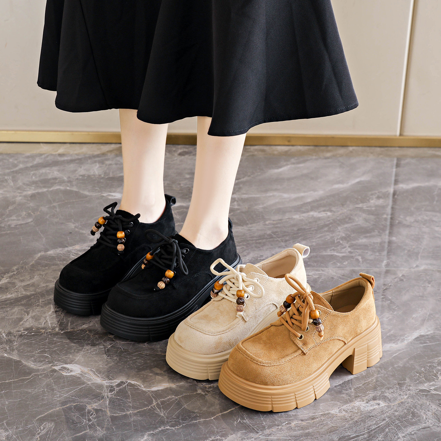 英伦风厚底乐福鞋女2026新款春季厚底增高勃肯鞋配裙子黑色小皮鞋