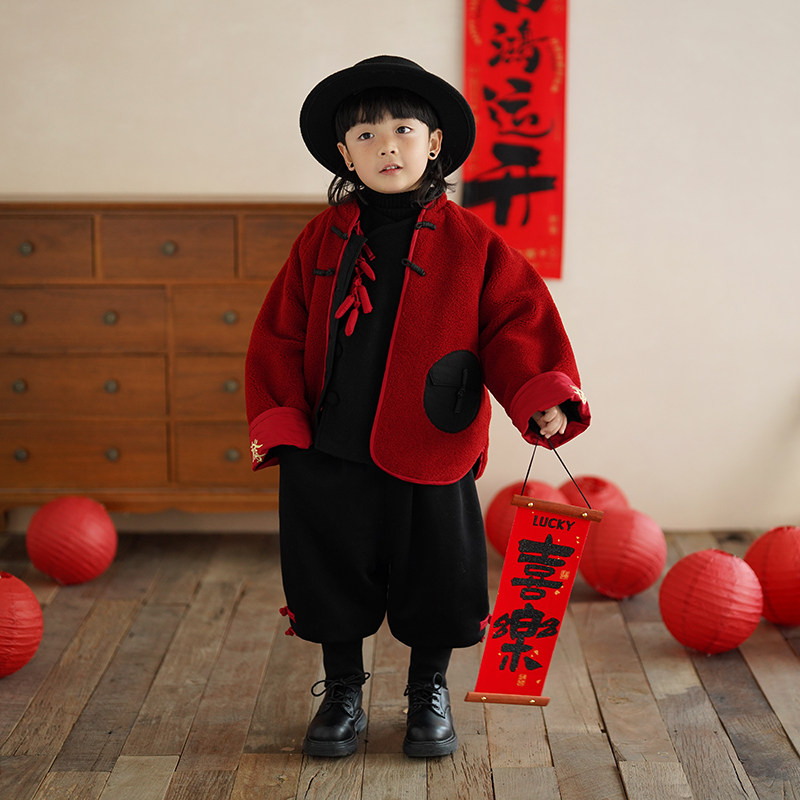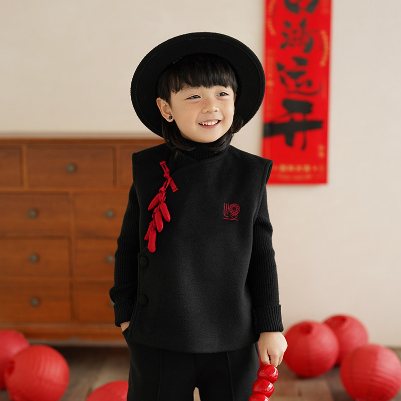 砚台家童装男童新中式马甲外穿冬季新年衣服儿童背心加厚宝宝年服
