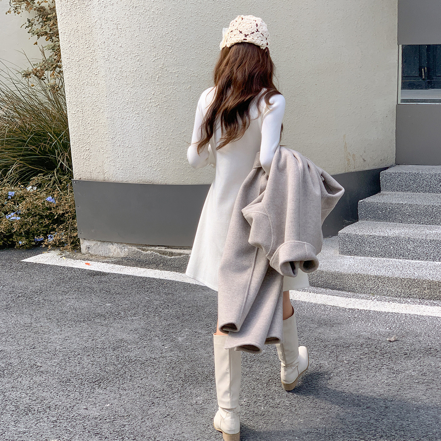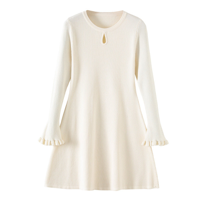 白色裙子短款a字裙长袖收腰内搭连衣裙打底针织裙子秋冬毛衣裙