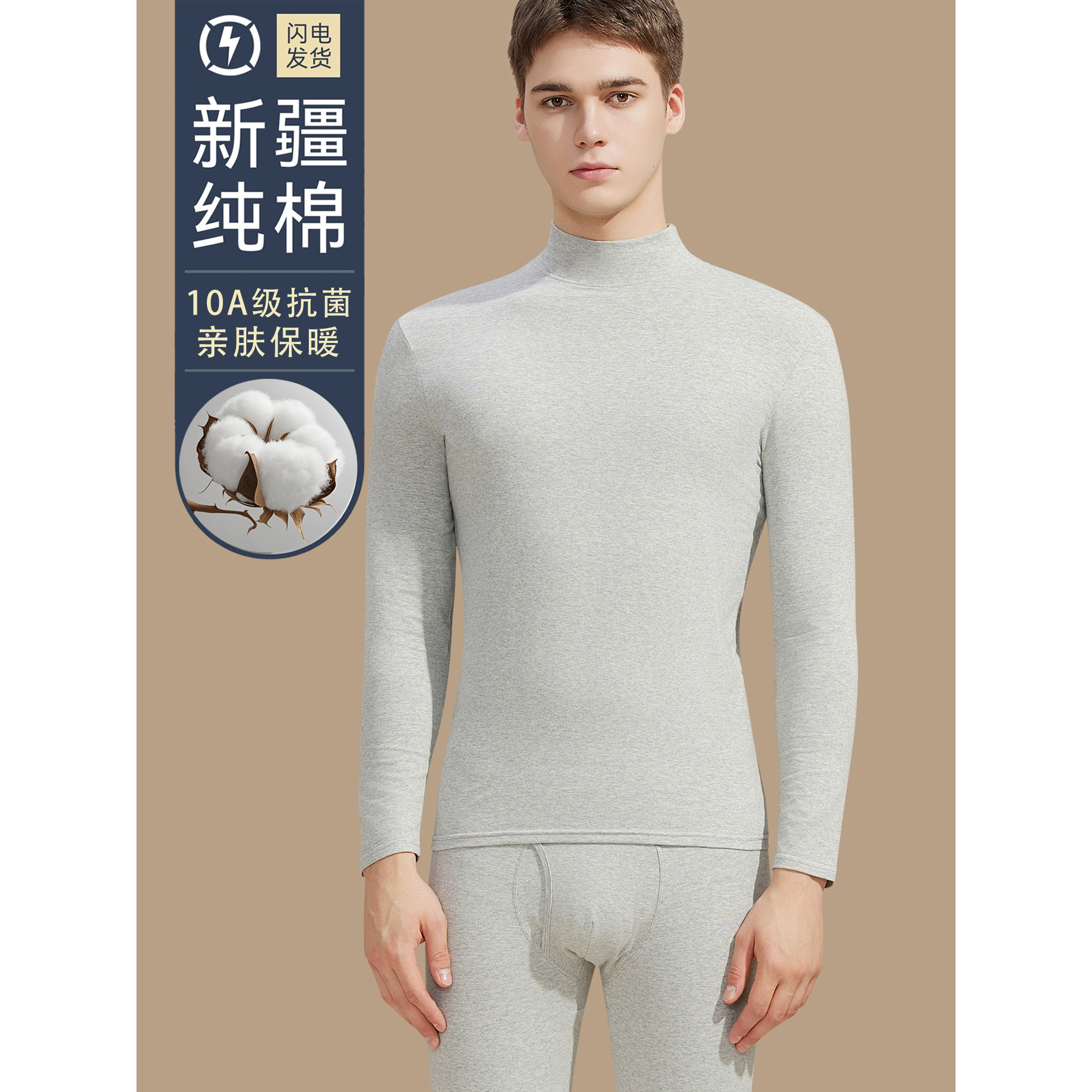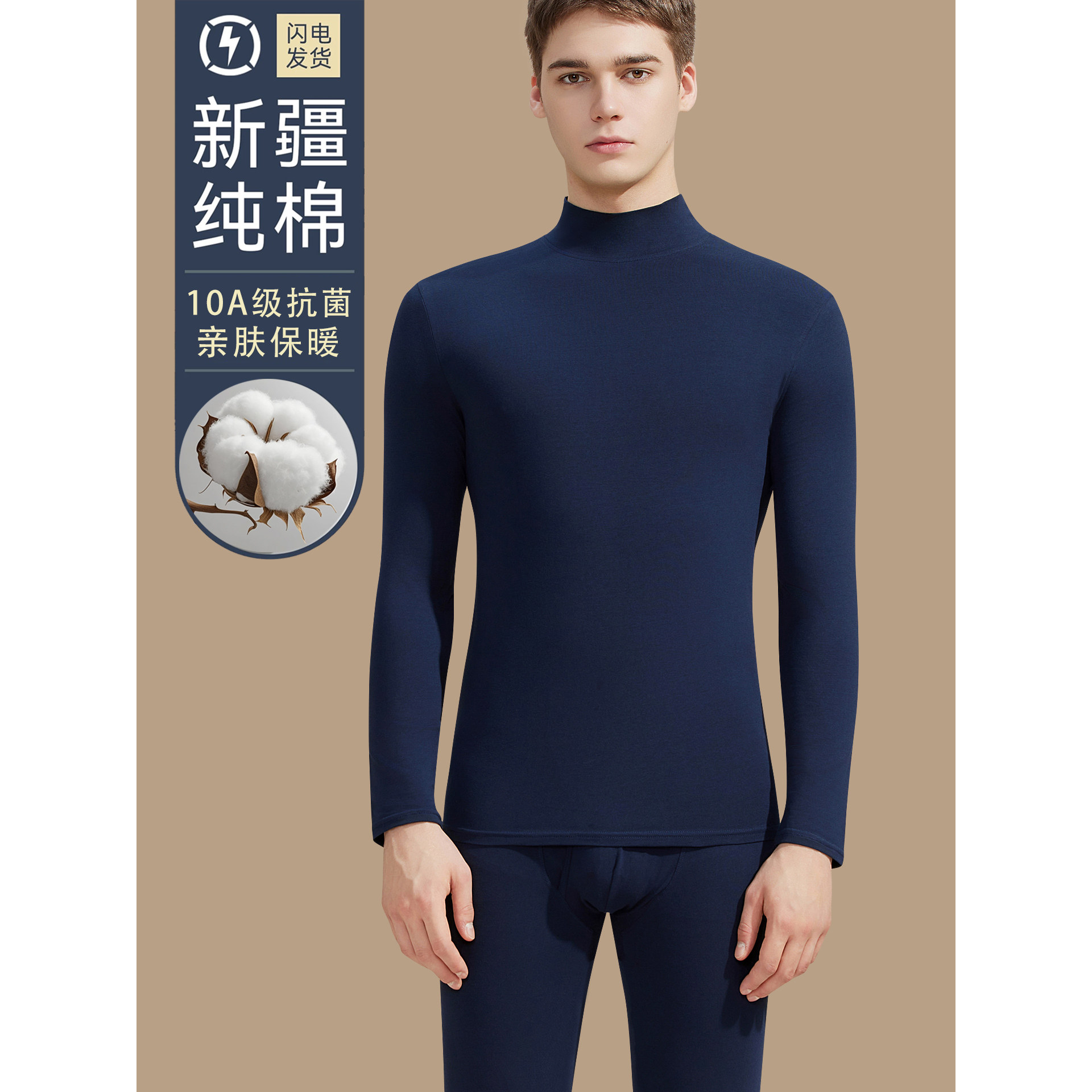 中高领保暖内衣男士纯棉秋衣秋裤套装全棉抗菌男款打底棉毛衫冬季