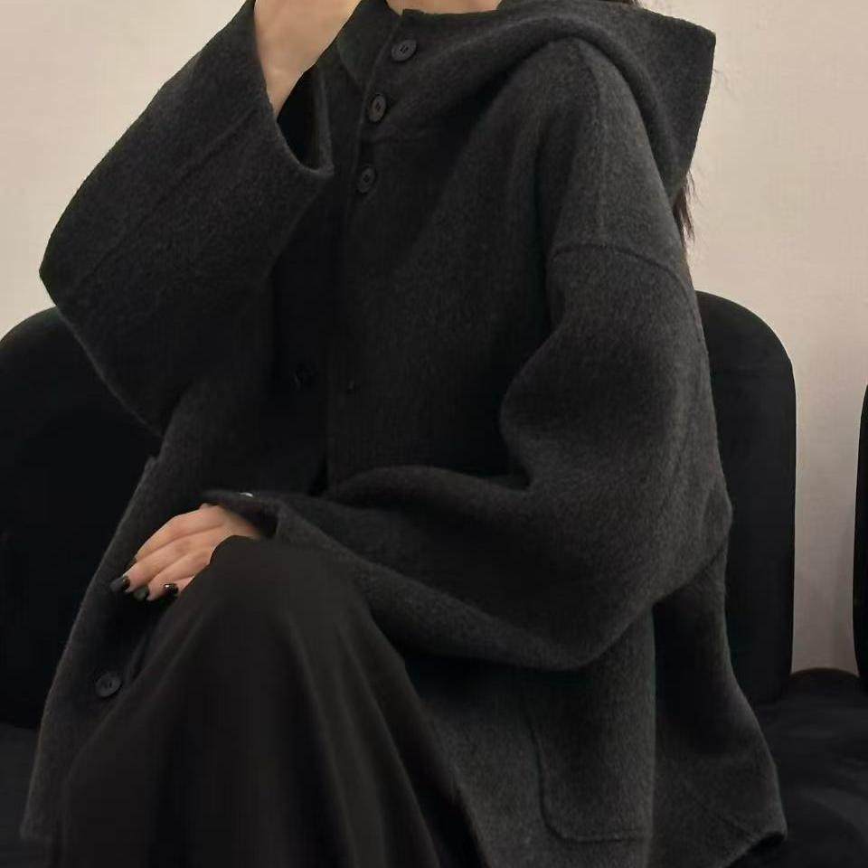韩版高端连帽双面羊绒大衣女秋冬新款小个子阔版显瘦羊毛呢子外套