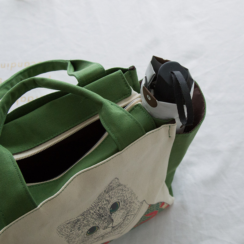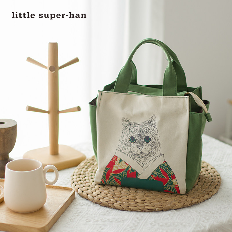 可爱手拎饭盒包帆布手提s便当包大容量午餐带饭包日式拉链妈咪包