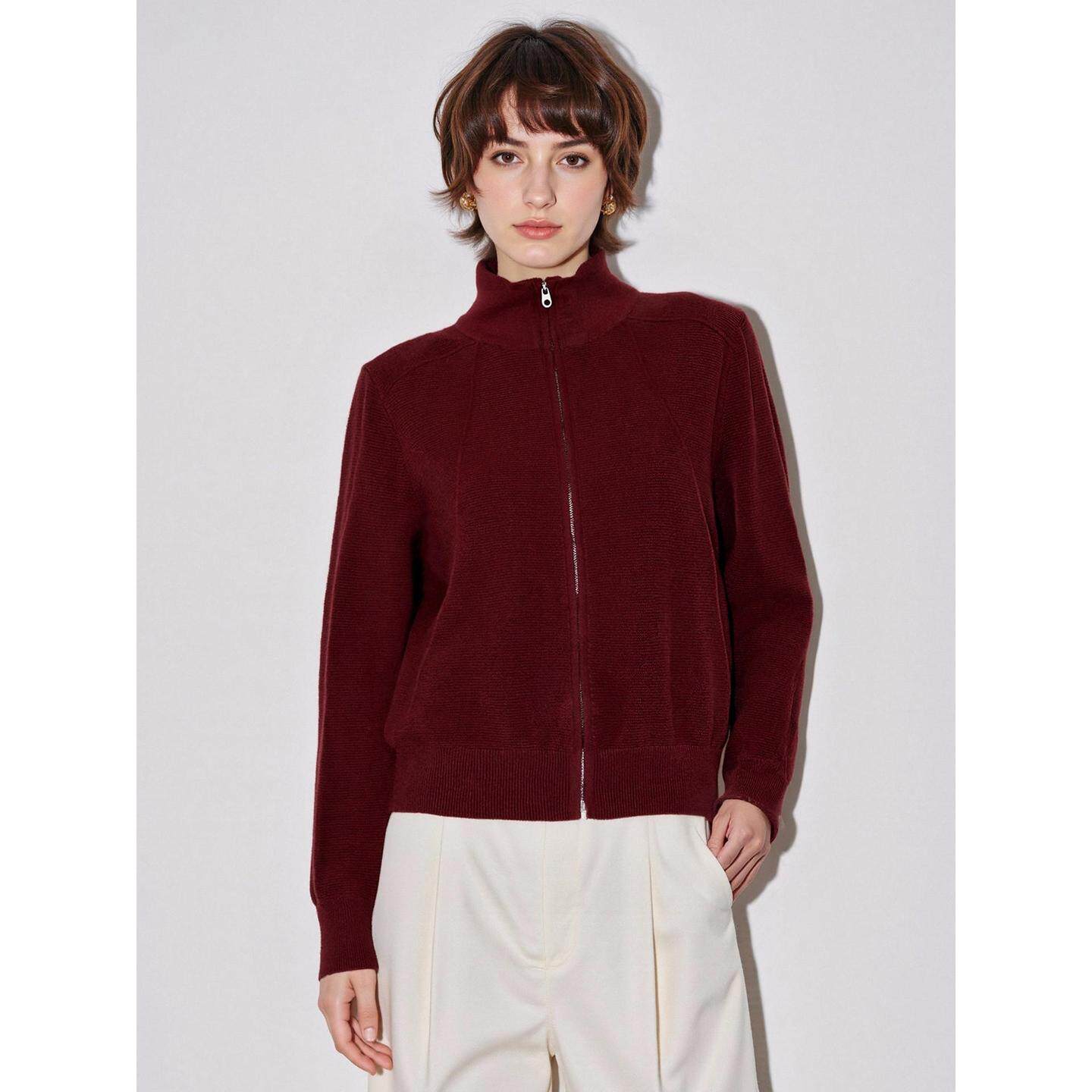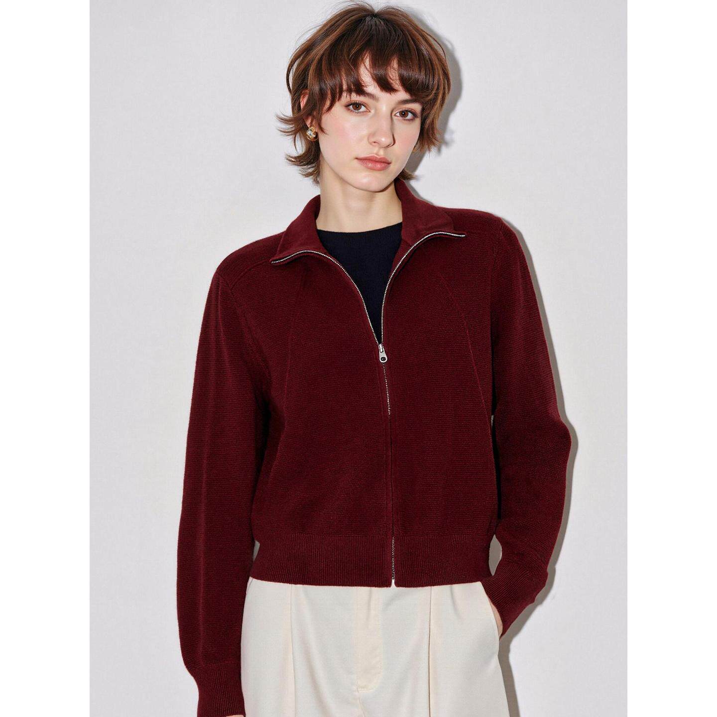 Basic House/百家好红色半高领毛衣女士2026春季新款拉链针织开衫