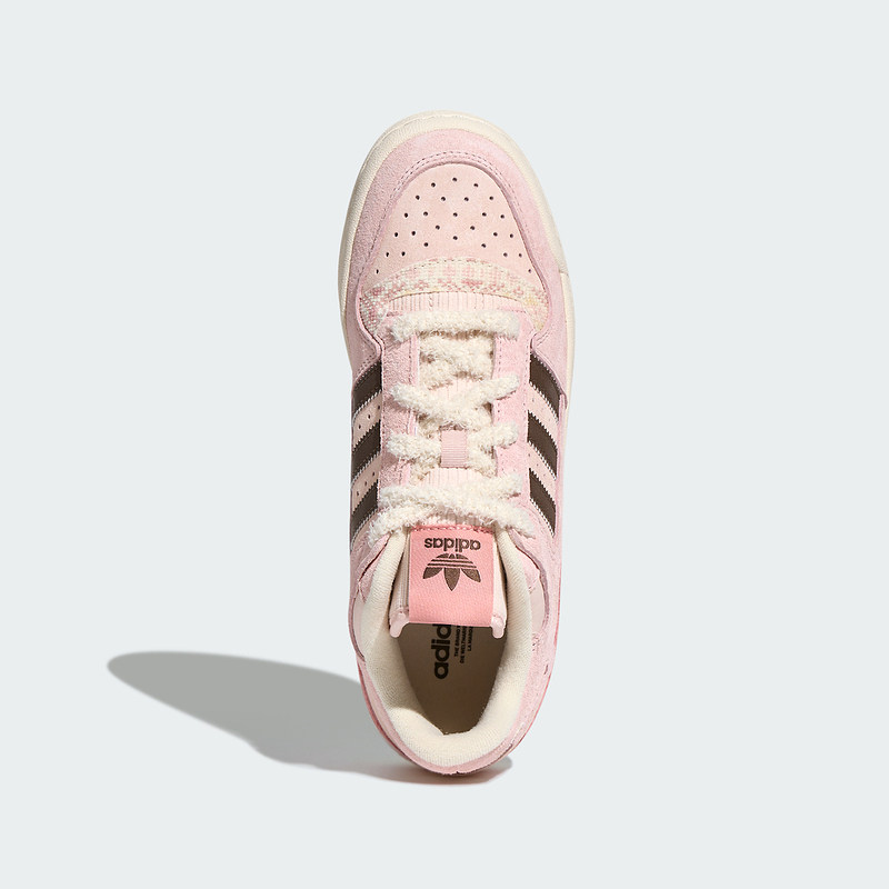 adidas阿迪达斯三叶草毛绒鞋带休闲鞋女FORUM LOW粉色板鞋 KJ4300