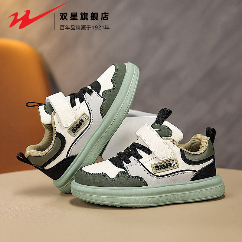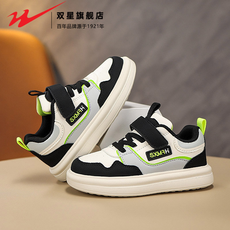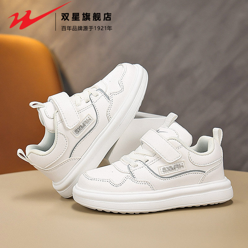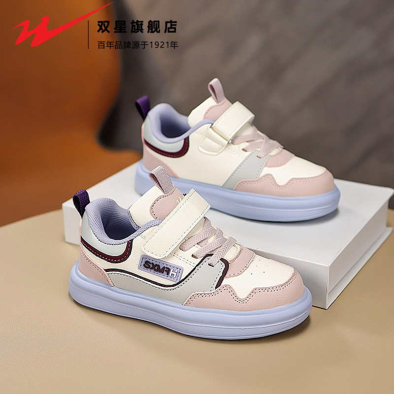 双星女童鞋子2026新款春秋款男孩皮面防水休闲板鞋儿童运动跑步鞋