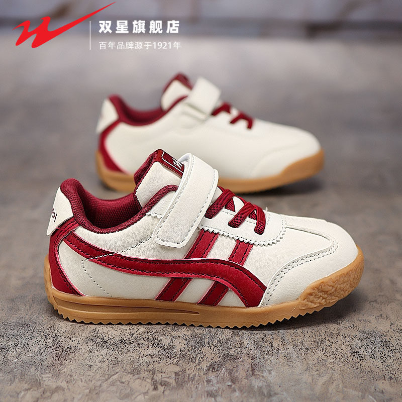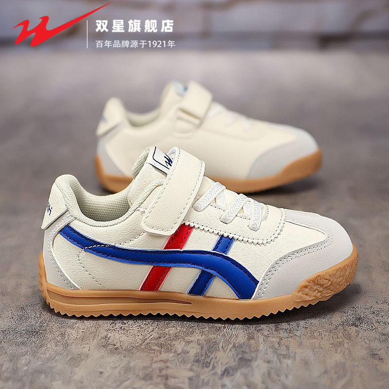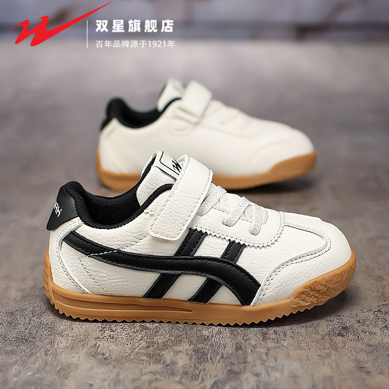 双星魔术贴儿童鞋春秋款皮面防水男童阿甘鞋女童运动休闲小白板鞋